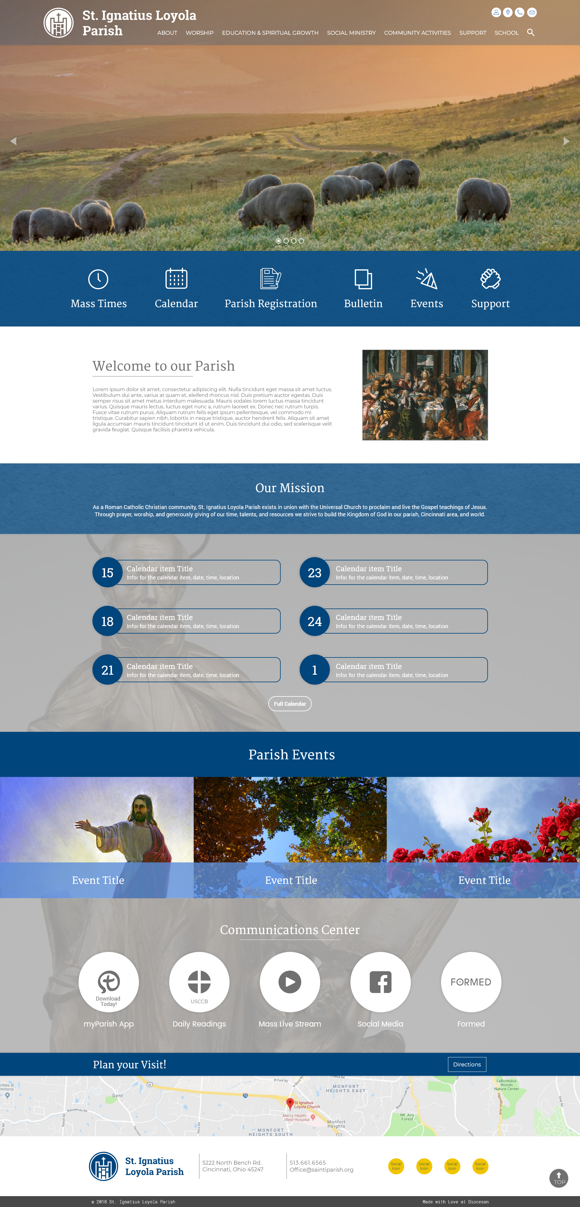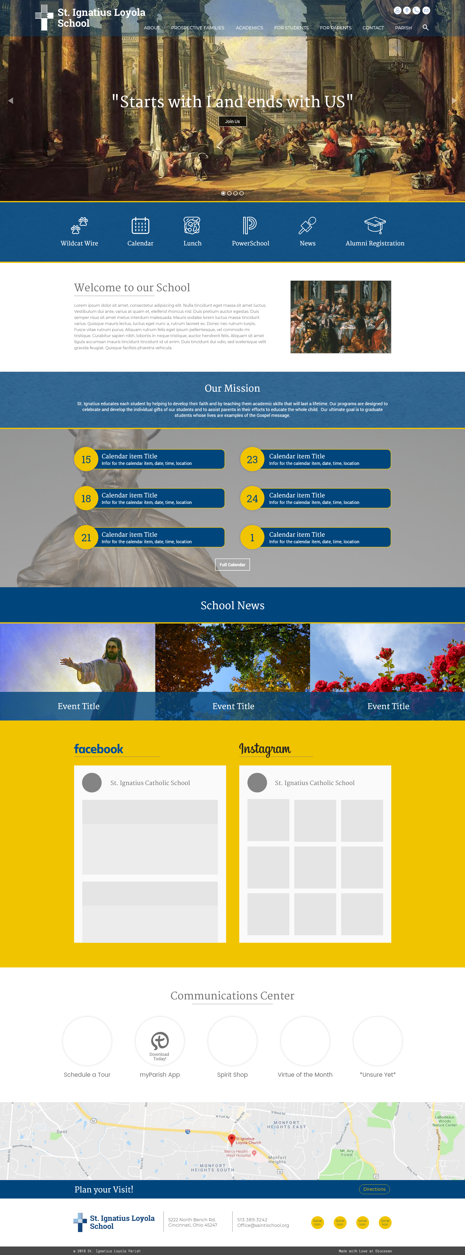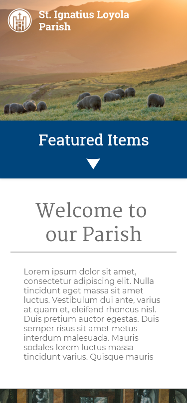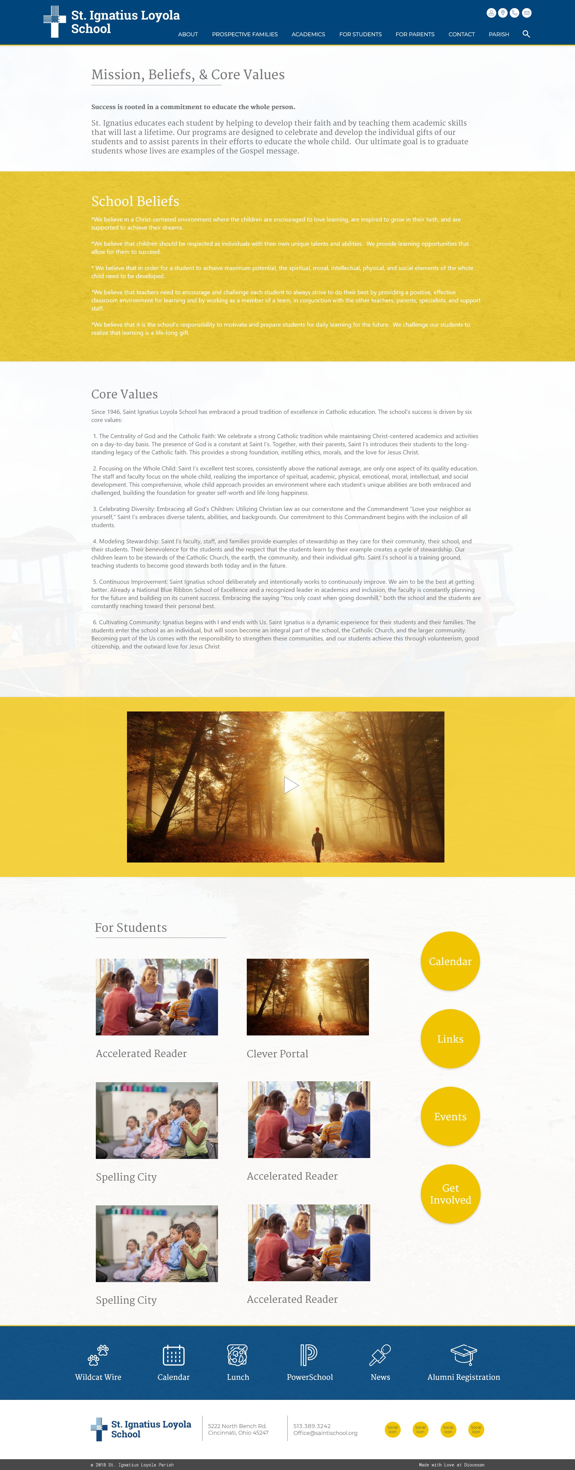 (icons, mission, and news/events) So there would be a bit of a contrast, primarily blue across an then a think yellow under the blue.