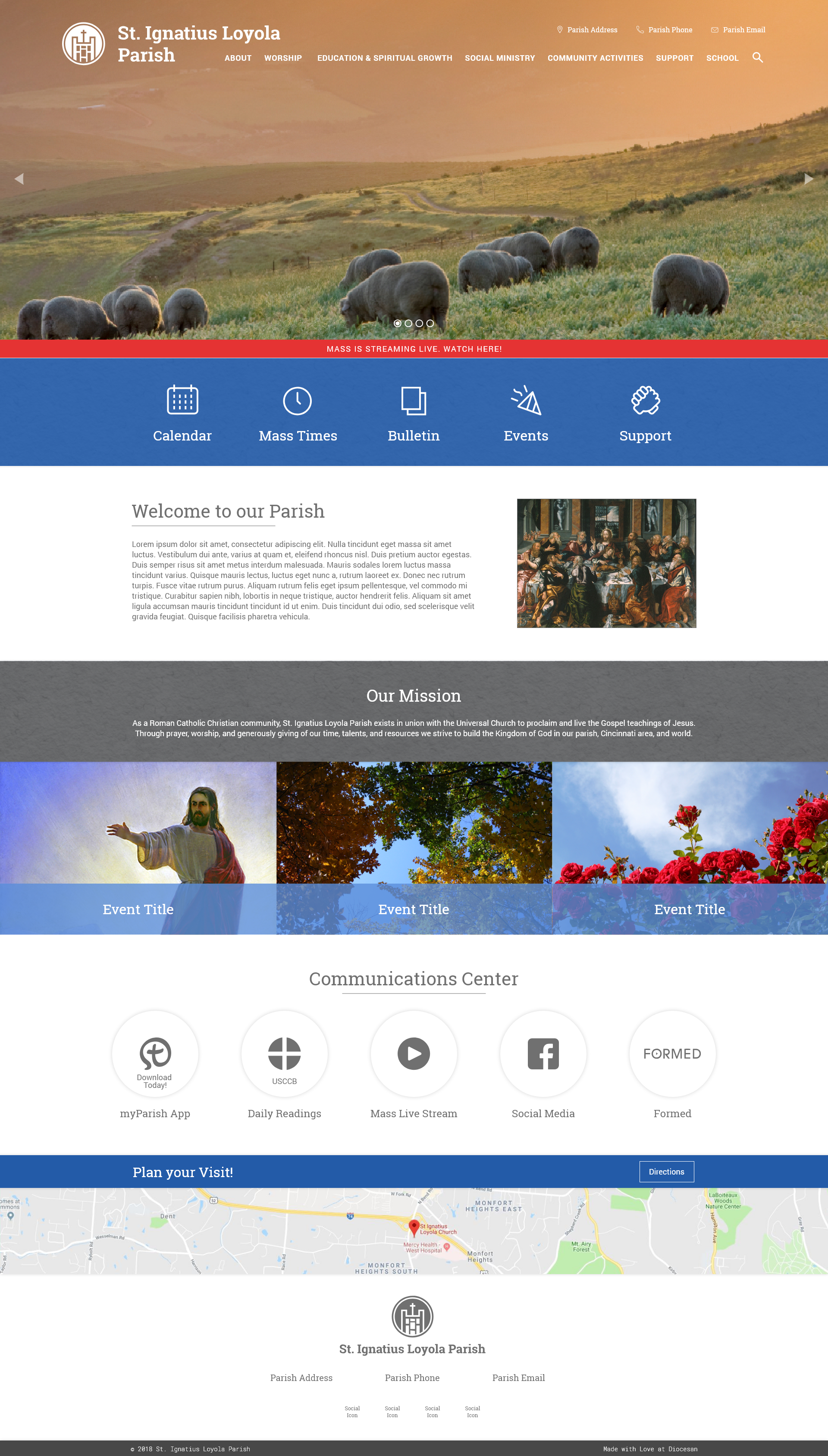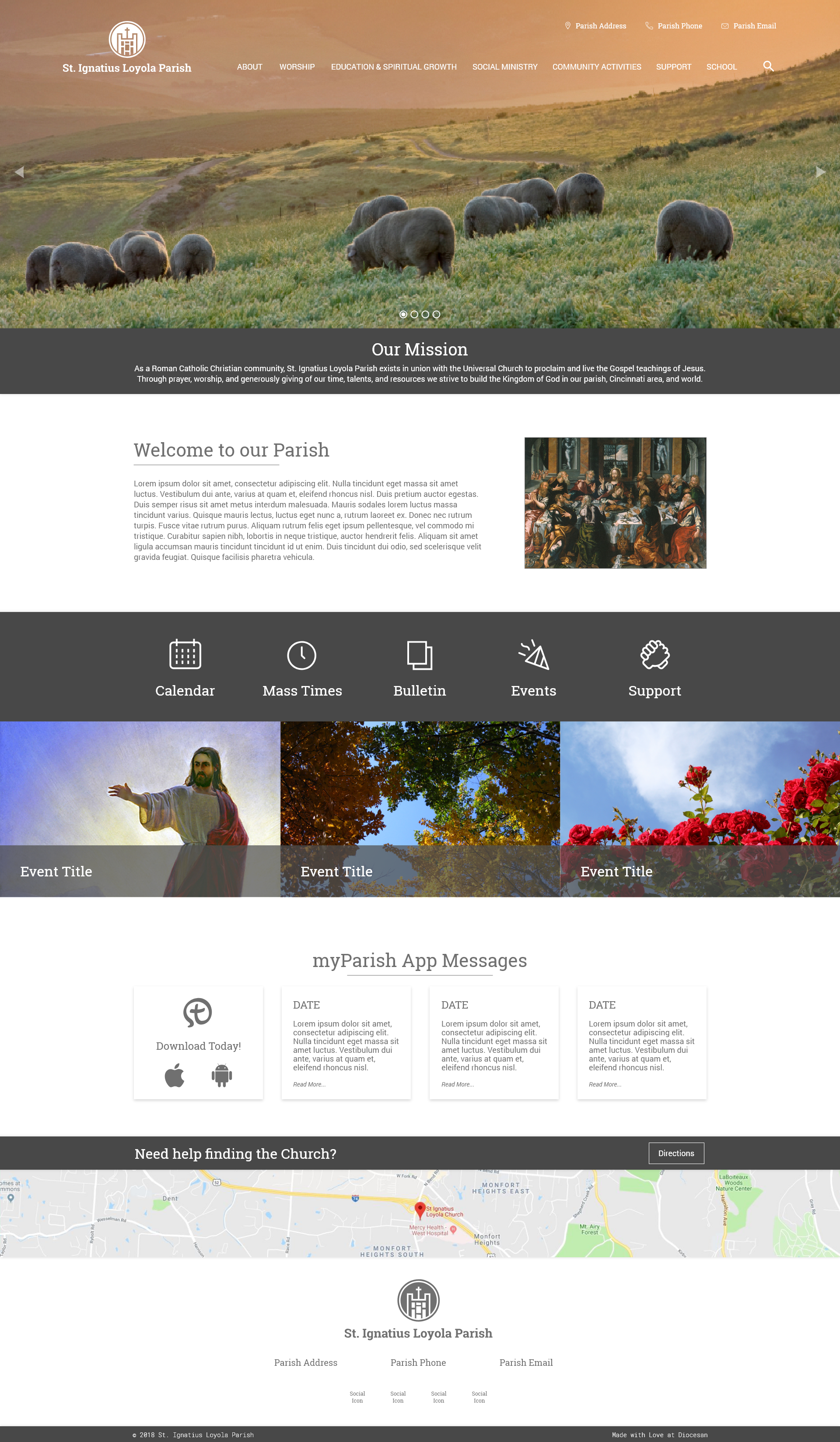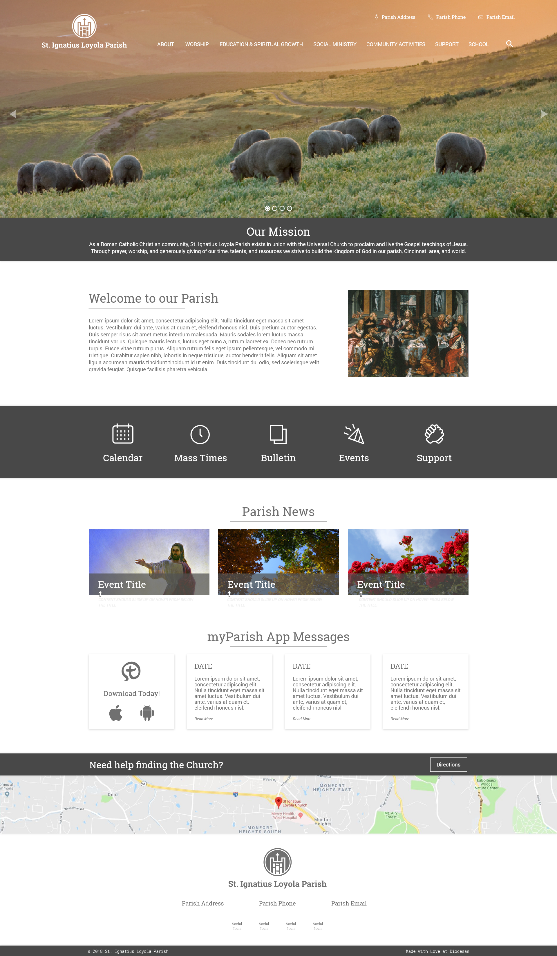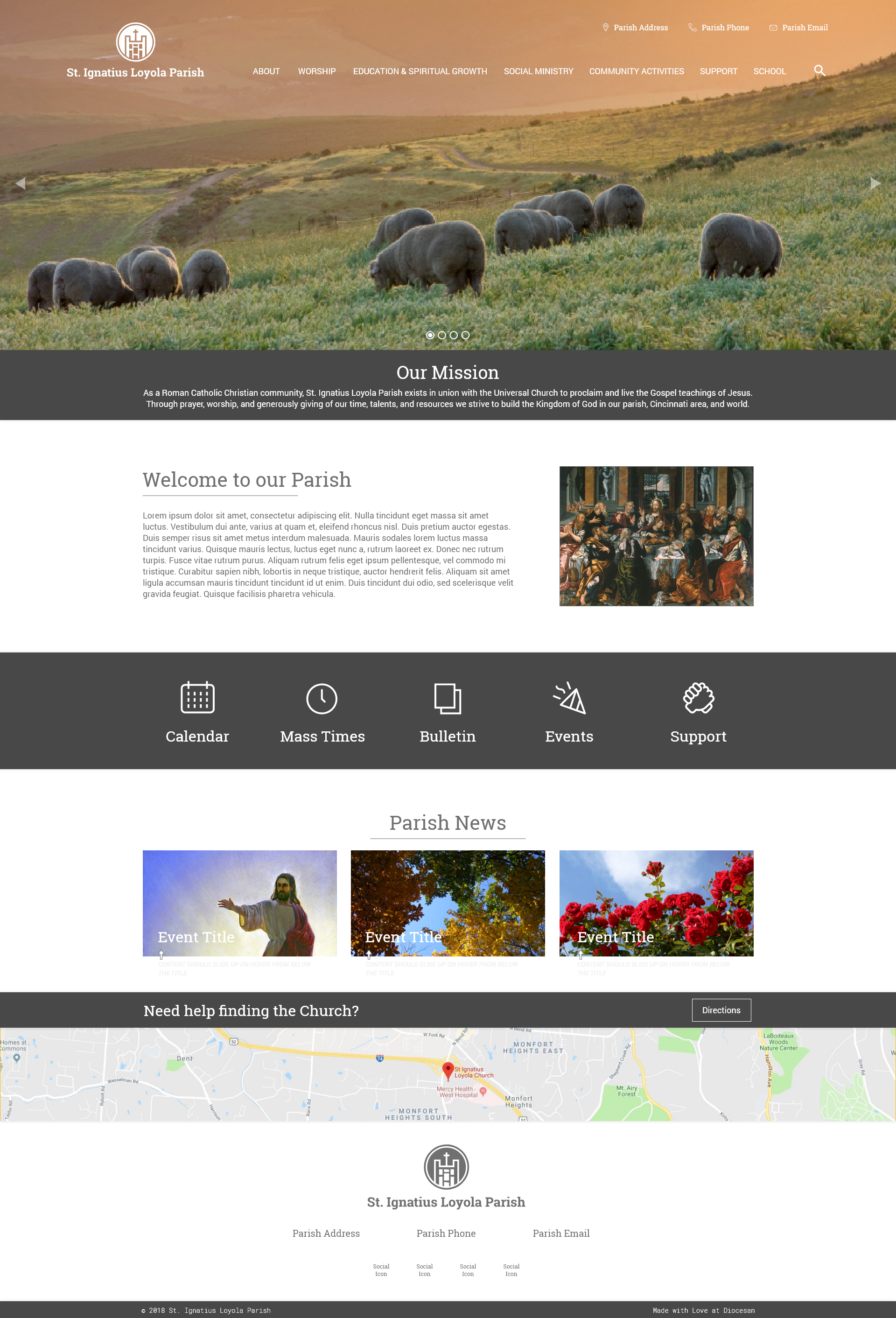 Thanks for the like-real proof!!! It looks great! I think I forgot to add that the team was concerned that in the Parish news section, we wouldn't be able to see the titles. Could you move the title/copy below image. Maybe try them centered first?