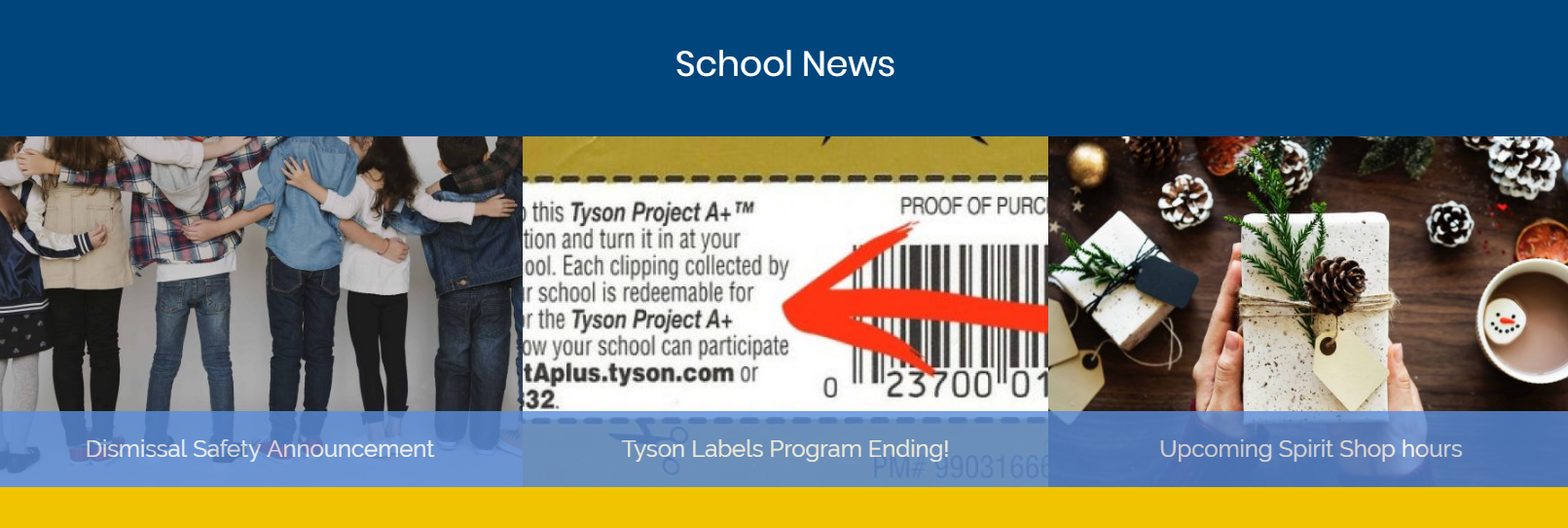 ✔ S - Add yellow thin bar under School News & make color behind post title dark blue