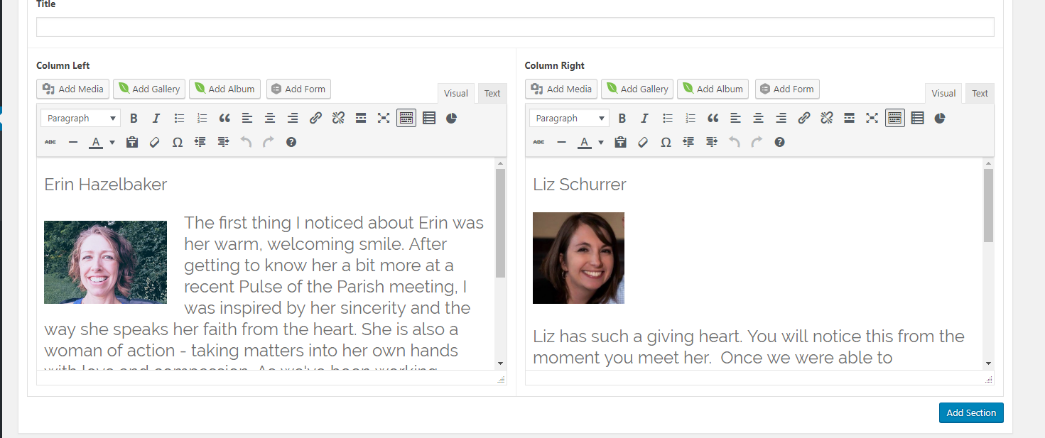 From the list: As of Thursday Morning 12/13 ✔ SC - Mission Template - Photo Proportions Veronica A. added this on Feb 21, 2019 Completed Feb 21, 2019 by Kyle S. Assigned to Kyle S. Notes https://sainti.org/church/?page_id=2475&preview=true image.png 1.03 MB • Download image.png 209 KB • Download Comments & Events Kyle Sullivan, Web Development I updated site/secondary/_mission.scss as follows. I assume this will break something else, and while I haven't been able to find anything yet, I wouldn't have coded discrete heights and widths for all img tags in the Mission Template. img, iframe { margin-bottom: 1em; } iframe { height: 500px; width: 100%; } Feb 21, 2019 at 3:33 PM Notified 1 person Kyle Sullivan completed this to-do. Feb 21, 2019 at 3:33 PM