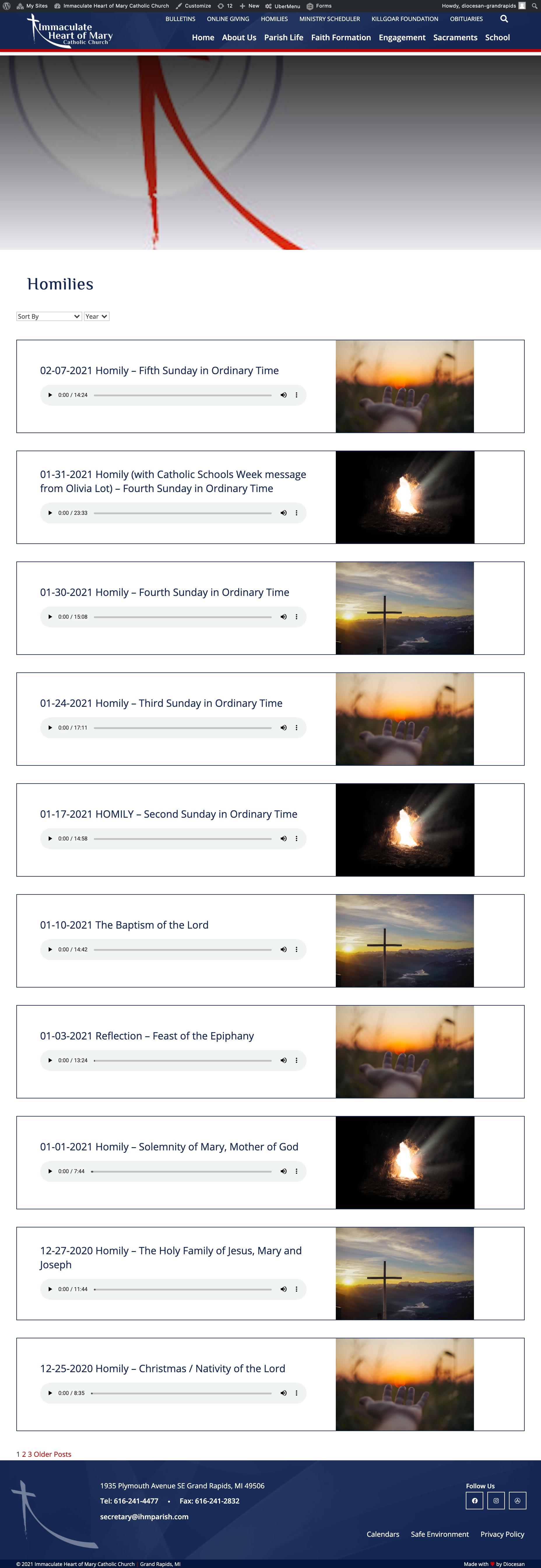 You mentioned the homilies just being a list but this is the page that I am seeing: https://ihm.diocesanweb.org/church/homilies/