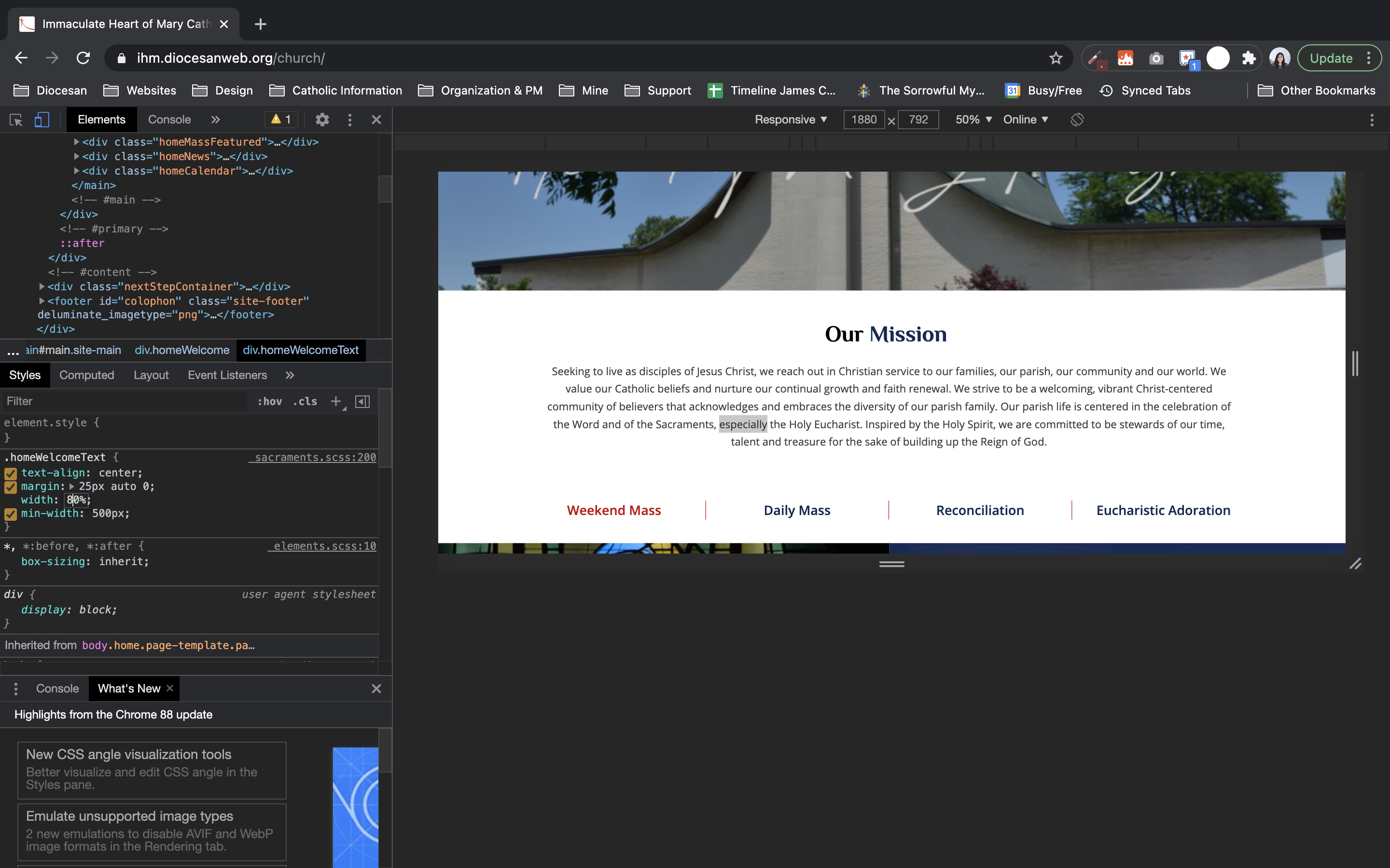 From the list: Homepage ✔ Parish Only - Home - Mission - pull section margin from 50% to 50% Veronica A. added this on Feb 15, 2021 Completed Feb 15, 2021 by Kyle B. Assigned to Kyle B. Notes Screen Shot 2021-02-12 at 1.33.06 PM.png 1.1 MB • Download Comments & Events Kyle Brown completed this to-do. Feb 15, 2021 at 7:49 PM