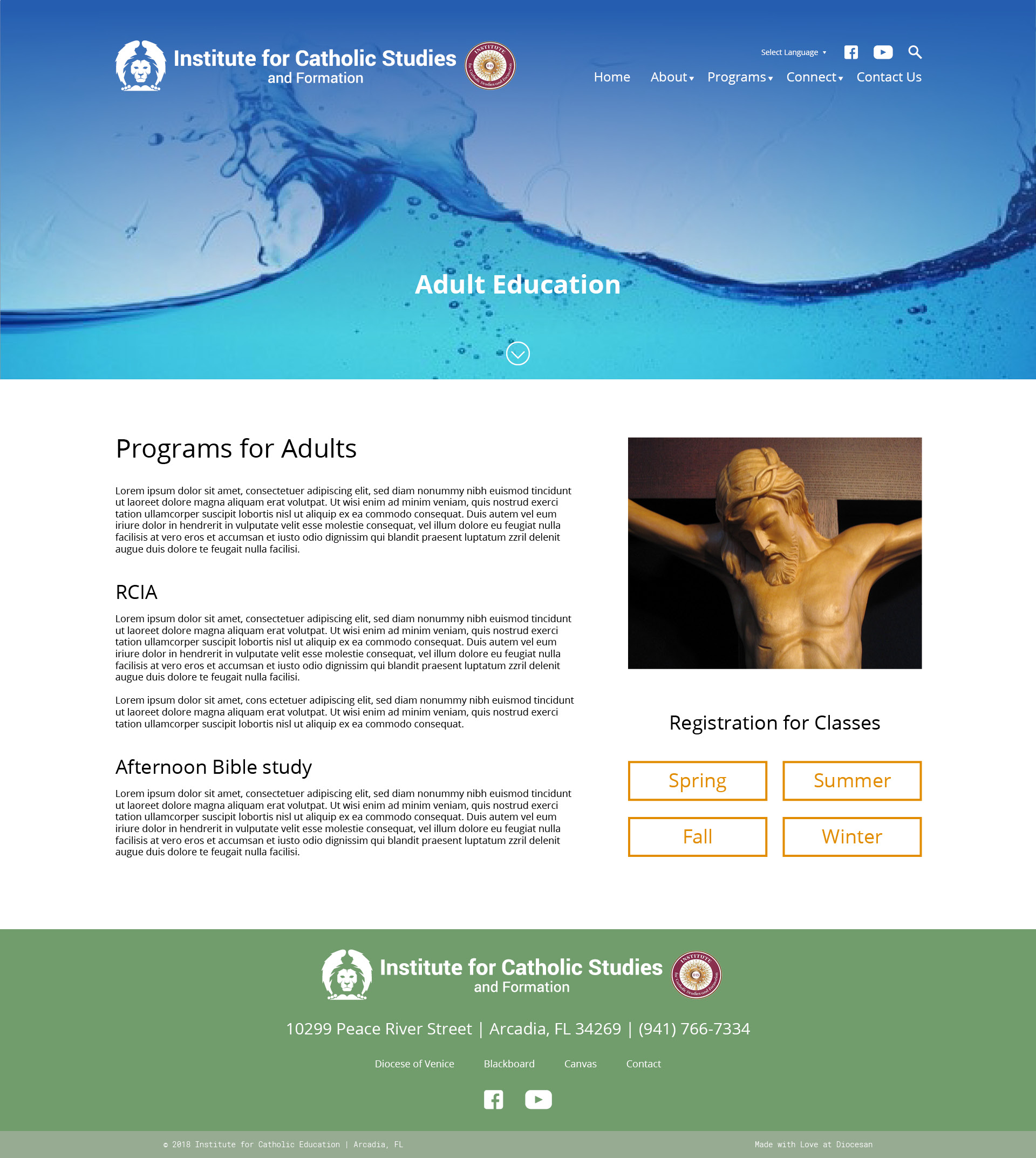 I have some inner pages for you to take a look at and specifically the adult education page, based off the email you sent me earlier with the water image. I want to get your opinion on the design since I don't have the exact content for the page, its simply and idea for headings and some buttons for registration. Ill include the homepage as well with some of the updates since we last spoke.
