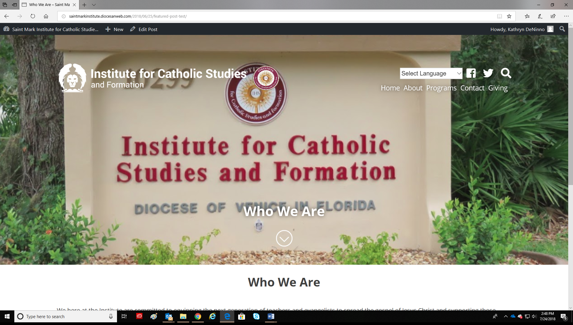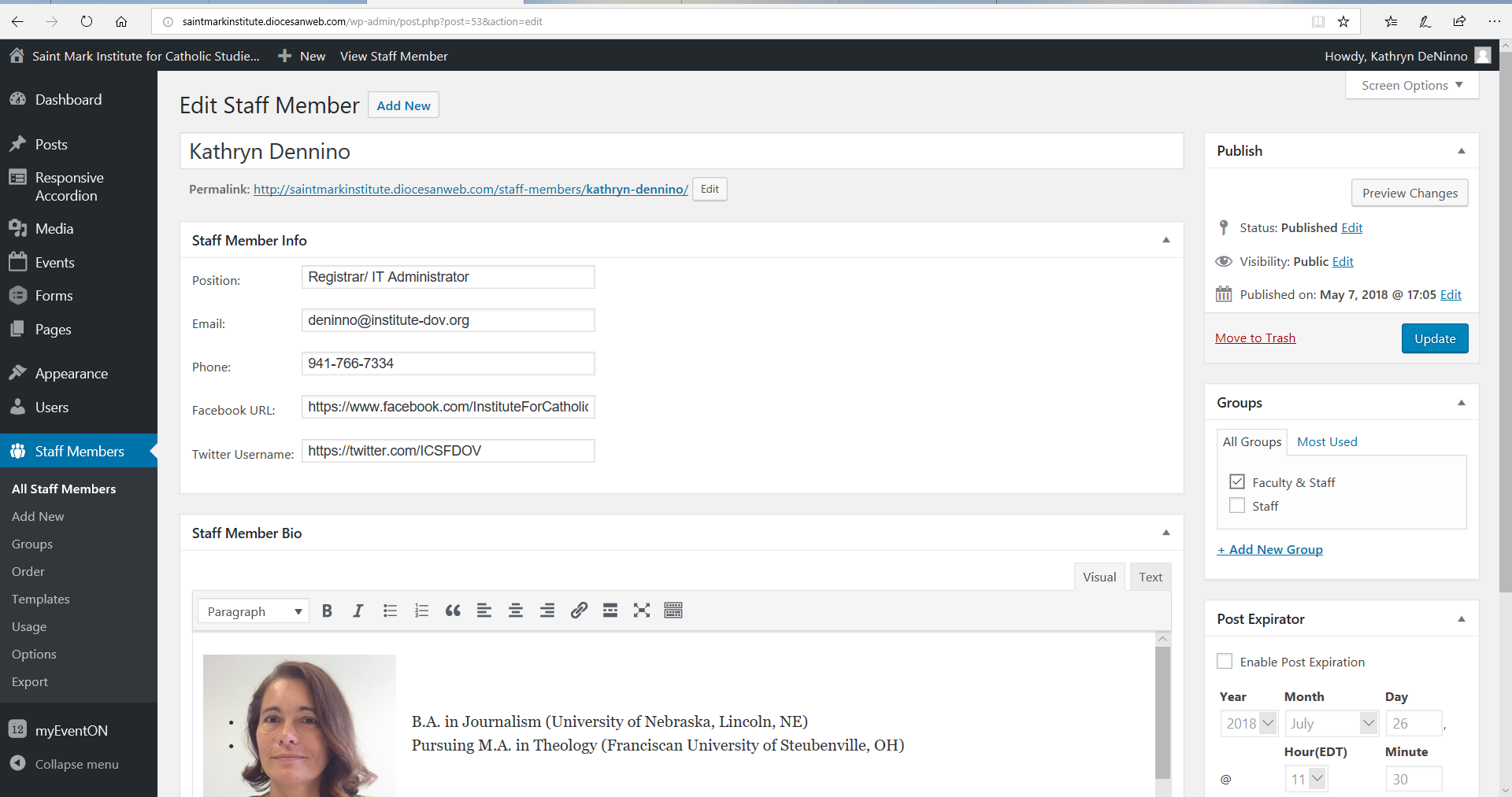 One thing I forgot to ask about earlier was concerning your domain. Am I correct in assuming that Roger/Scott over at Diocese of Venice IT are in charge of your current domain? Do you plan on using the current institute-dov.org domain or were you going to be changing it to something else?