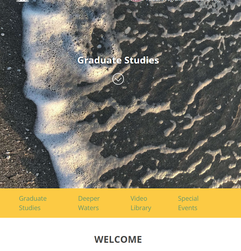 Currently set to Graduate Studies, Deeper Waters, Video Library & Special Events
