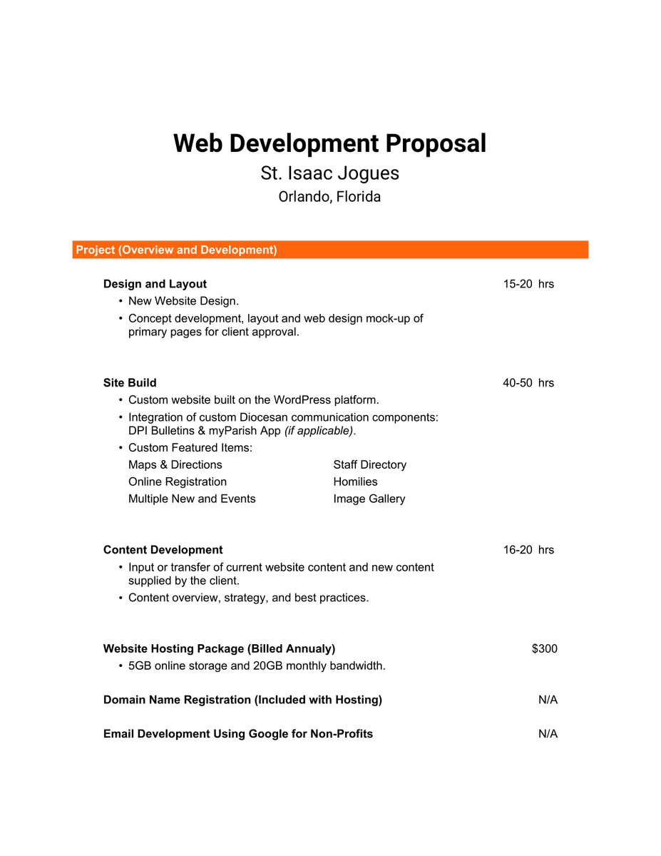 Website Proposal - St. Isaac Jogues - Orlando, FL