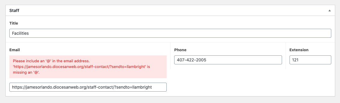 ✔ Staff - Update email field to be a link field with text that's always "Email Me"
