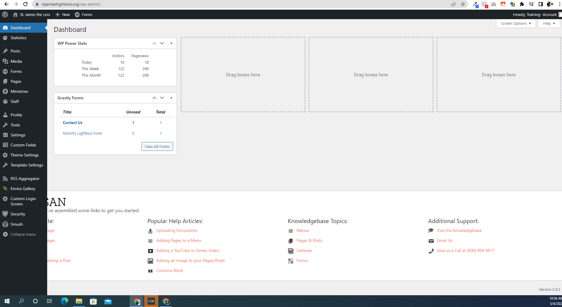 See screenshot attached. Why is the Diocesan help desk area cut off and displaying as usual? Can we get this fixed by my training today at 130pm? I highlight this section in the training.