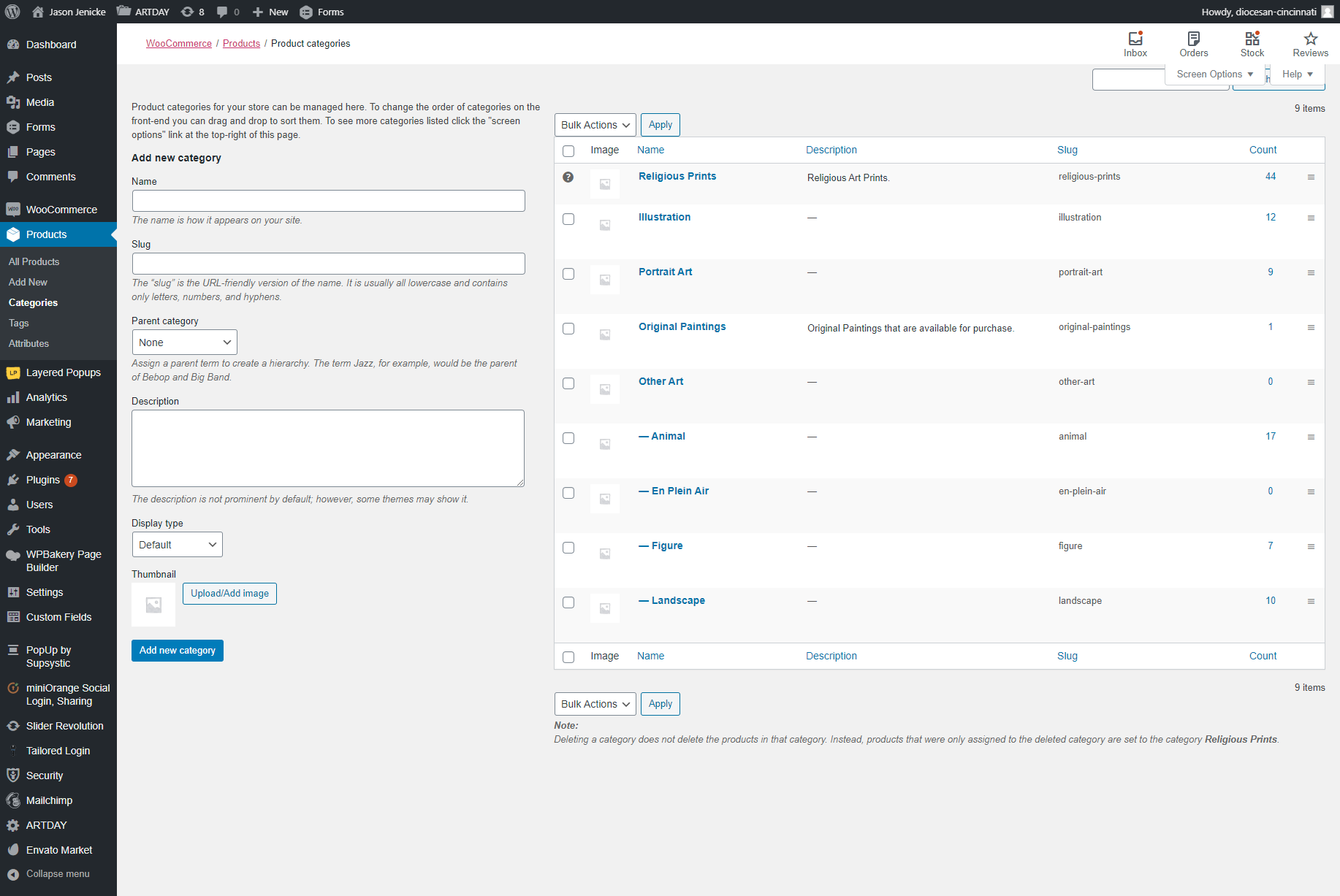 ❏ On the Artwork link on nav menu (/shop page) he'd like the sidebar menu option like this site has: https://www.gregolsen.com/gallery/?focus=christian I see that there is a way to do that on the Artday support but haven't figure out how to do it. Also he wants to be able to order those menu items, not just have them alphabetical, so how is that done.