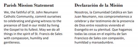 Mission Statement: we would like this to be two columns so we can put the English on the left and the Spanish on the right, like on our bulletin cover.