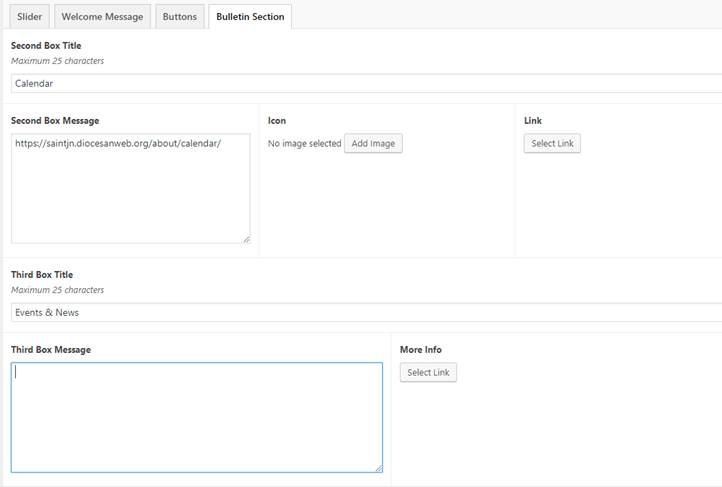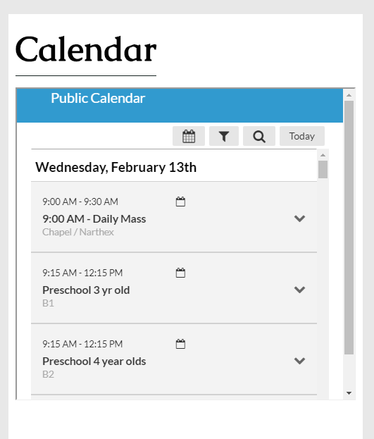 Hello, Veronica. We have decided we want the bulletin and the two new free form boxes to support 1) the bulletins, 2) the calendar, and 3) events and news. Can you tell me if it is possible (and how) to put the calendar that displays on this page, https://saintjn.diocesanweb.org/about/calendar/, in the 2nd box, without having to click through to the calendar like with the current calendar “button”?