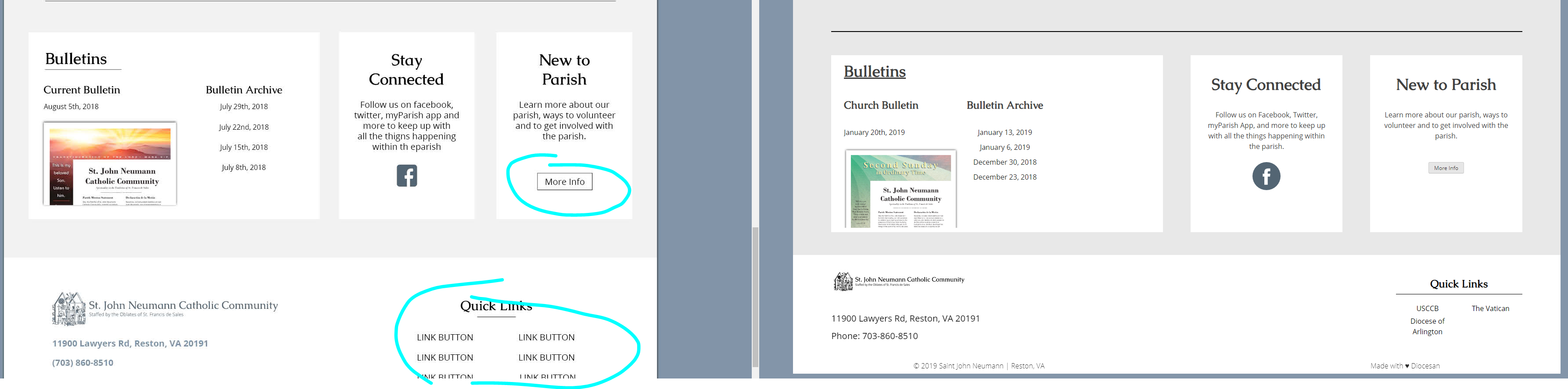 ✔ Footer - Quick Links should be bigger and centered on the right half of the footer