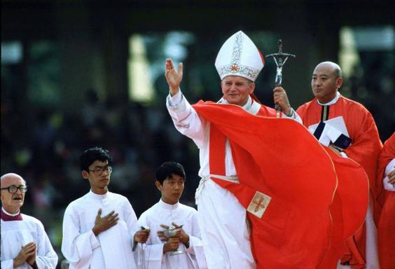 Its a bit blurry but I did my best to isolate Pope John Paul II. I have yet to find a photo similar in better quality so we may want to think about what images you want to use for the homepage since clean crisp images really help with the modernity of a site!