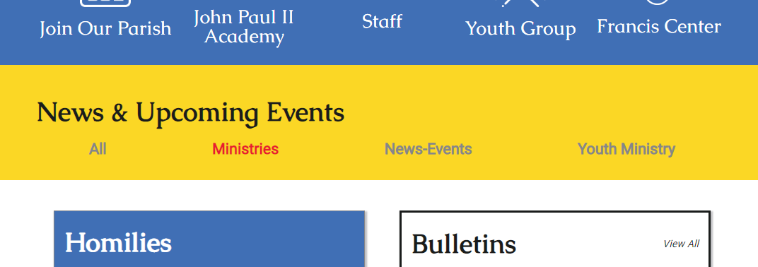 ✔ Homepage - News & Upcoming Events - Ministries is not displaying any posts