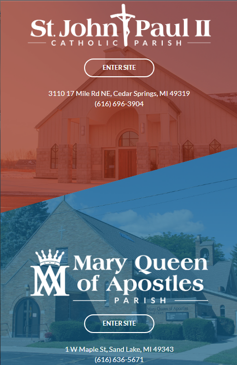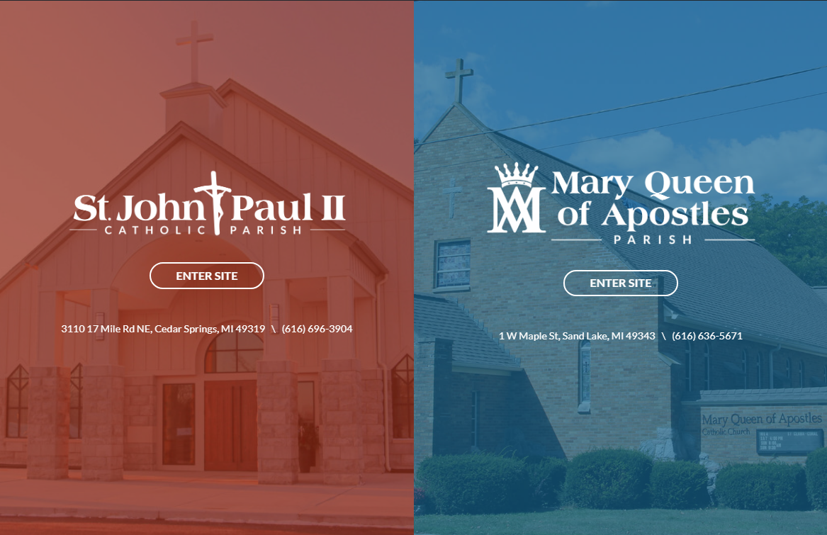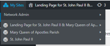 Once you log in, you will end up on the Landing Page. This will only have 2 options. Please be sure to navigate to Mary Queen of Apostles by hovering over My Sites and clicking the correct one.