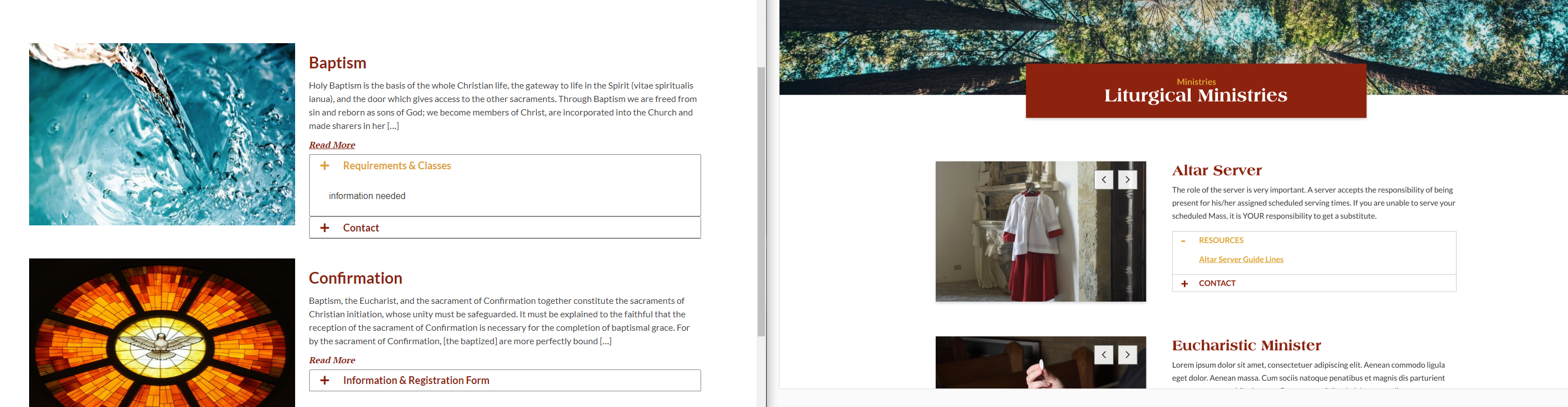 From the list: Inner Ministries Template ✔ Accordions should change to minus when open Veronica A. added this on Dec 19, 2019 Completed Dec 26, 2019 by Kyle B. Assigned to Kyle B. Notes current vs mockup image.png 1.87 MB • Download Comments & Events Kyle Brown completed this to-do. Dec 26, 2019 at 5:19 PM