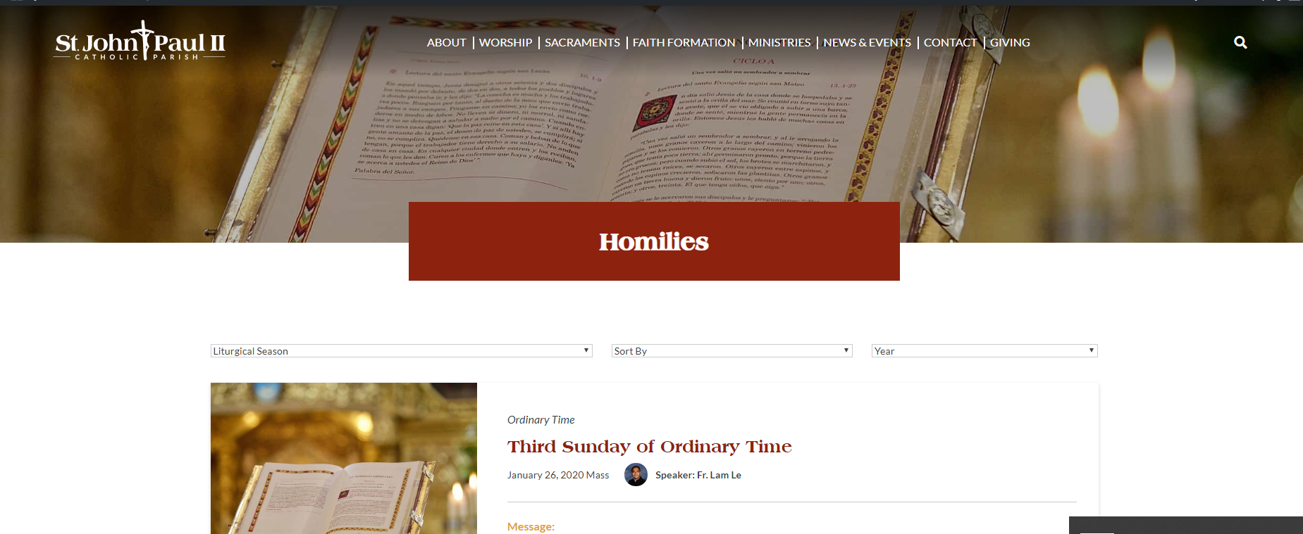 ✔ Add Default Featured Image for Homilies & have Homilies page use this image at the top as well.