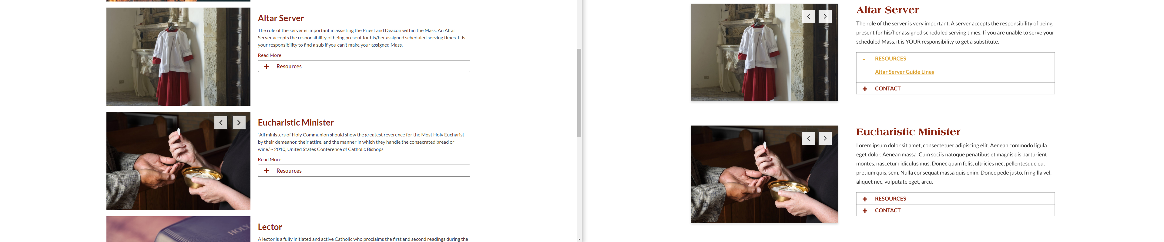 From the list: Inner Ministries Template ✔ Spacing between sections should be 80px Veronica A. added this on Dec 20, 2019 Completed Dec 26, 2019 by Kyle B. Assigned to Kyle B. Notes current vs mockuphttps://jp2-mqa.diocesanweb.org/st-john-paul-ii-parish/liturgical-ministries/ image.png 1.64 MB • Download Comments & Events Kyle Brown completed this to-do. Dec 26, 2019 at 7:53 PM