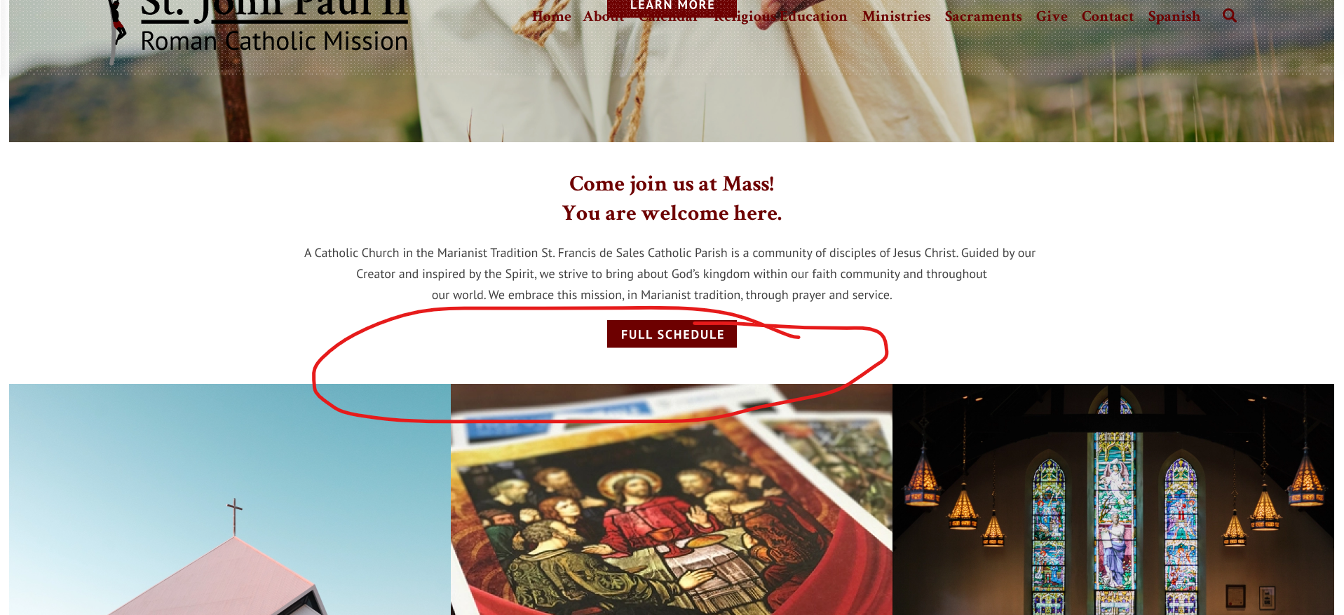 ✔ Homepage - Decrease the spacing between the Mass Times Button and the image buttons