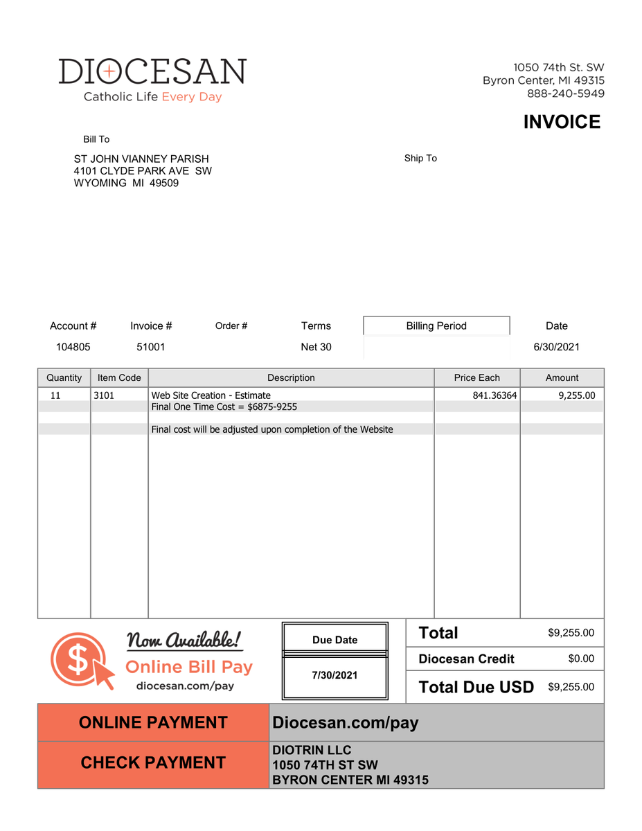Yesterday I spoke with Linda and she mentioned to me that she wanted to make sure to use an allotted amount of $2,112 toward the website project, as a deposit. I know it needs to be approved by the Diocese before July 7 and Linda is now on vacation.