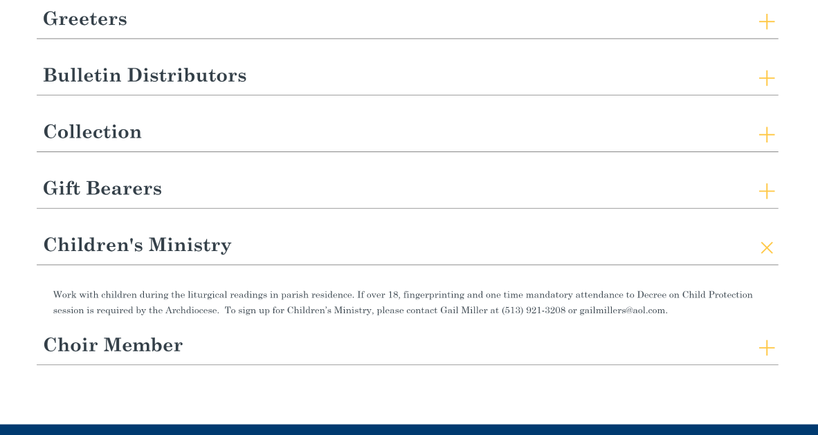 Please style them like the Accordions that are on the ministries page: https://stjosephathens.org/ministries/