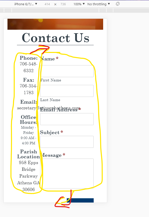 ✔ Contact Page - The contact info should stack above the form not mush into it