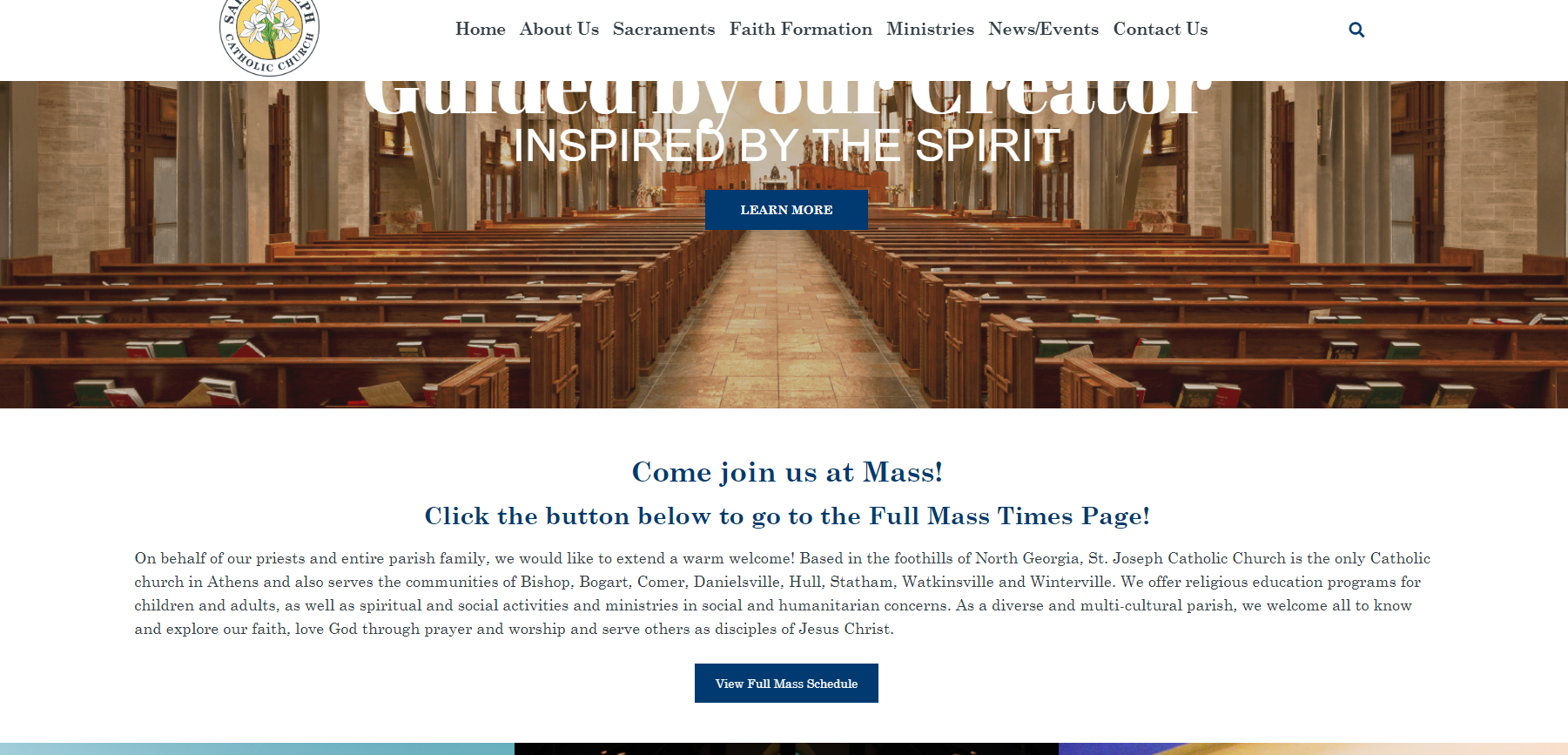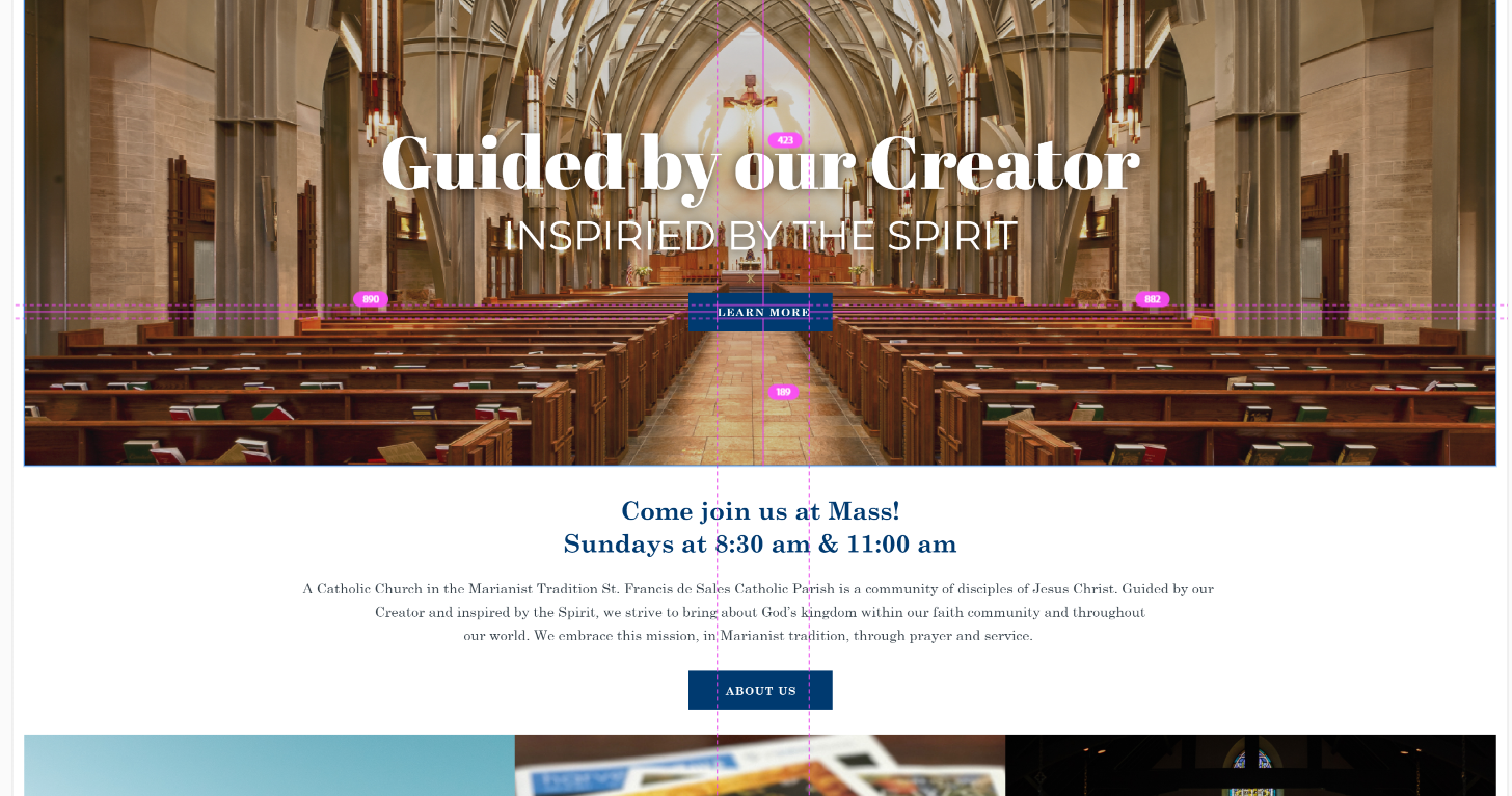 ✔ Homepage - Buttons in Mass Section and What's Happening section as well as buttons throughout site