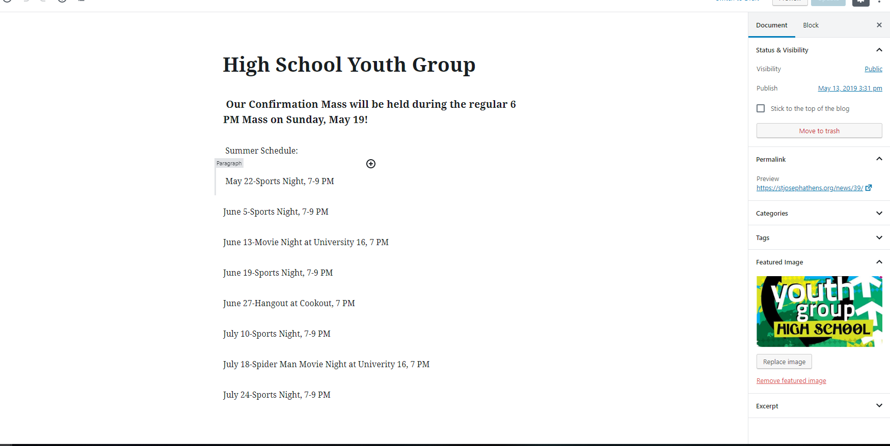 Right now there is no ACF for the event date on posts, so they all go for today's date on the homepage. It doesn't need to match a category since right now they are all one category and it wouldn't display anywhere on other categories anyway. Do it like St. Francis De Sales or the other launched ones. Thank you.