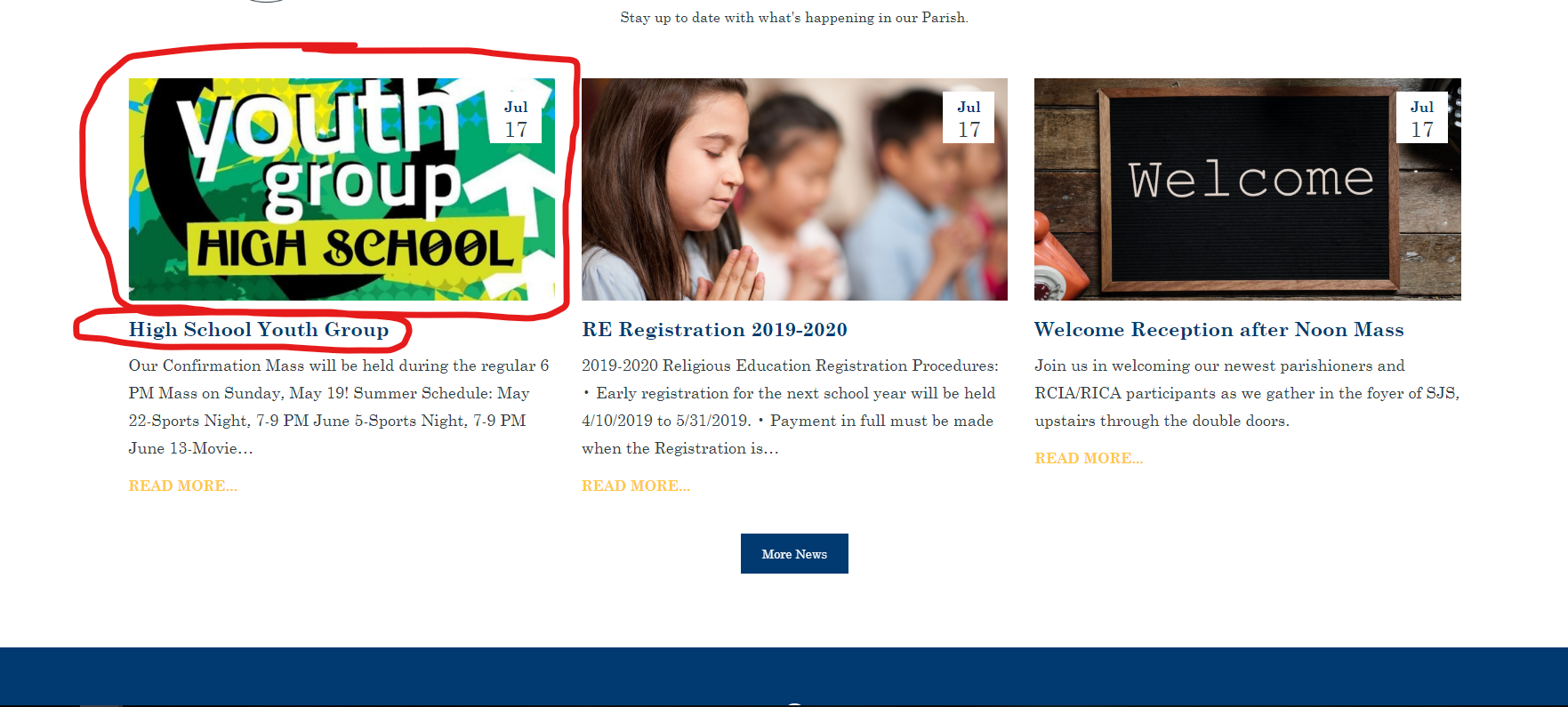 ✔ Homepage - What's Happening Section Linking the Featured Image and the Title to the post