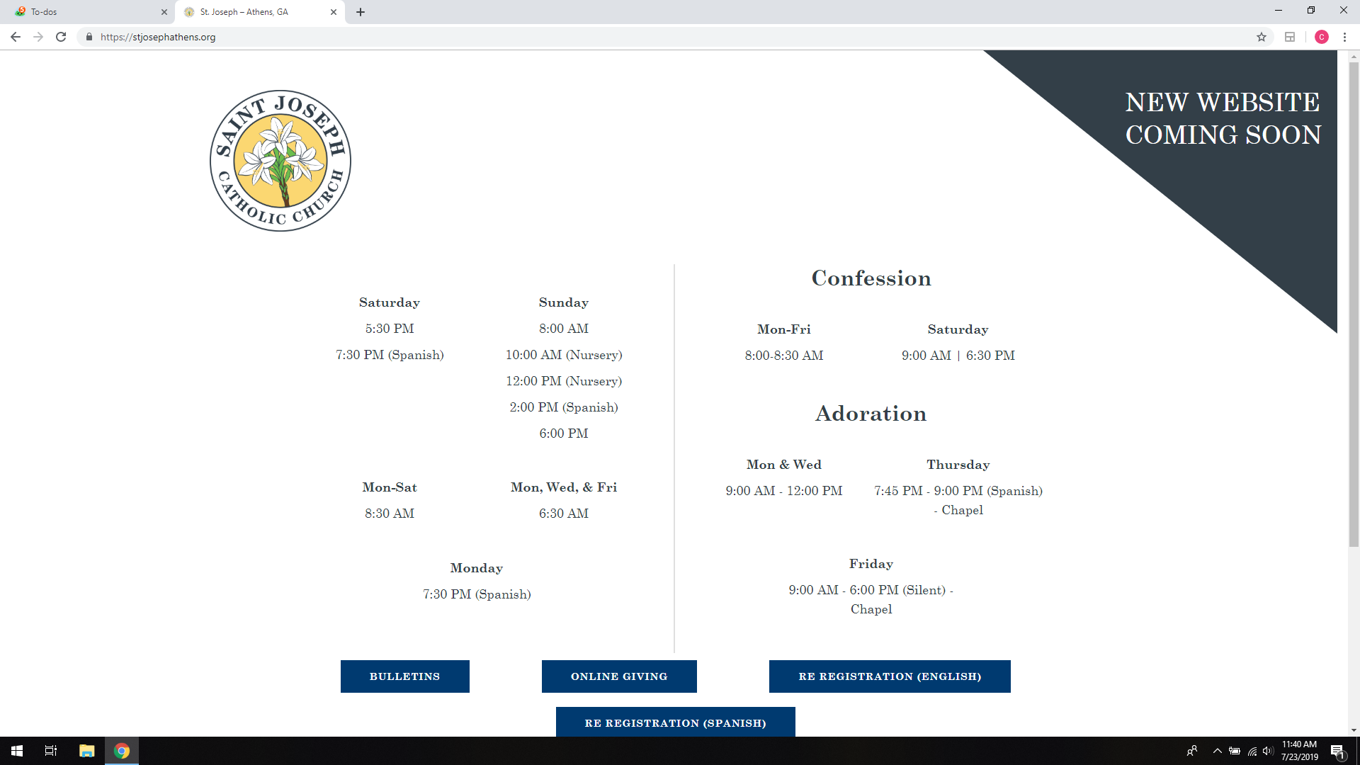 Add the Mass Times heading as same size as "Confession" and "Adoration" centered above the left Column please. Thanks