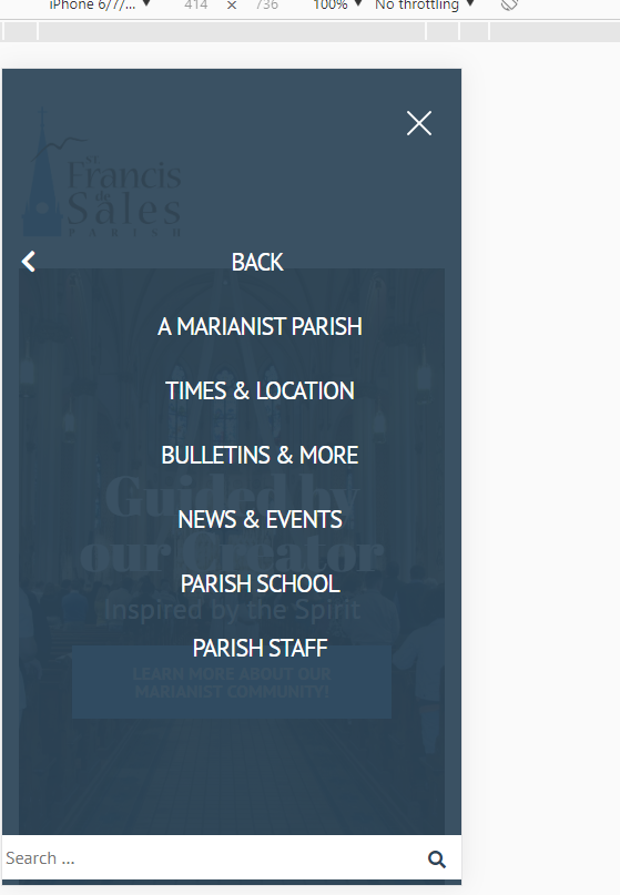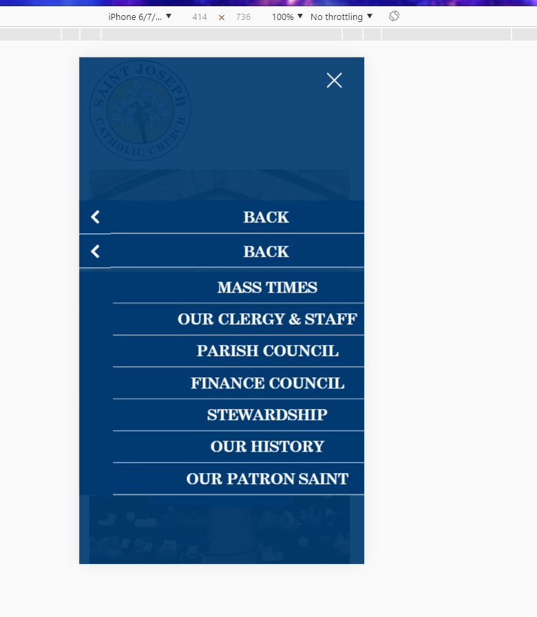 ✔ Menu - Clicking the arrow should open up the sub-pages with the same look as the main-menu items.