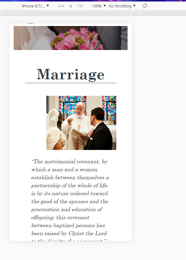https://stjosephathens.org/sacraments/marriage/ This should be across the site for mobile because they will stack anyway, so they might as well be center aligned. This should apply to entry-content, not the header and footers, just in case. Thanks. The image below is right-aligned in the desktop view which is should be, but on mobile I would like it to be center aligned.
