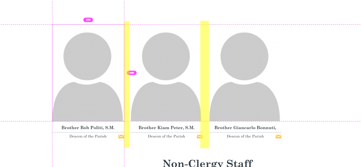 ✔ Staff Page - More margin between staff members, total of 30px in the proof between staff members, right now, on desktop it is not even 20px