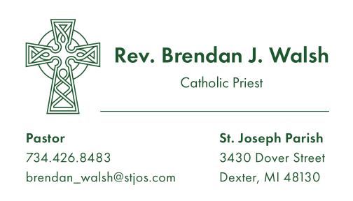 I've attached a .pdf of the proof for new business cards for Fr. Brendan. The Celtic cross on the mockup is very clear and crisp, and the dark green is the current color of the logo on our stationery. I hope this is something you can work with. If not, let me know and I can follow up with the staff member who worked on the business card layout when she returns next week.