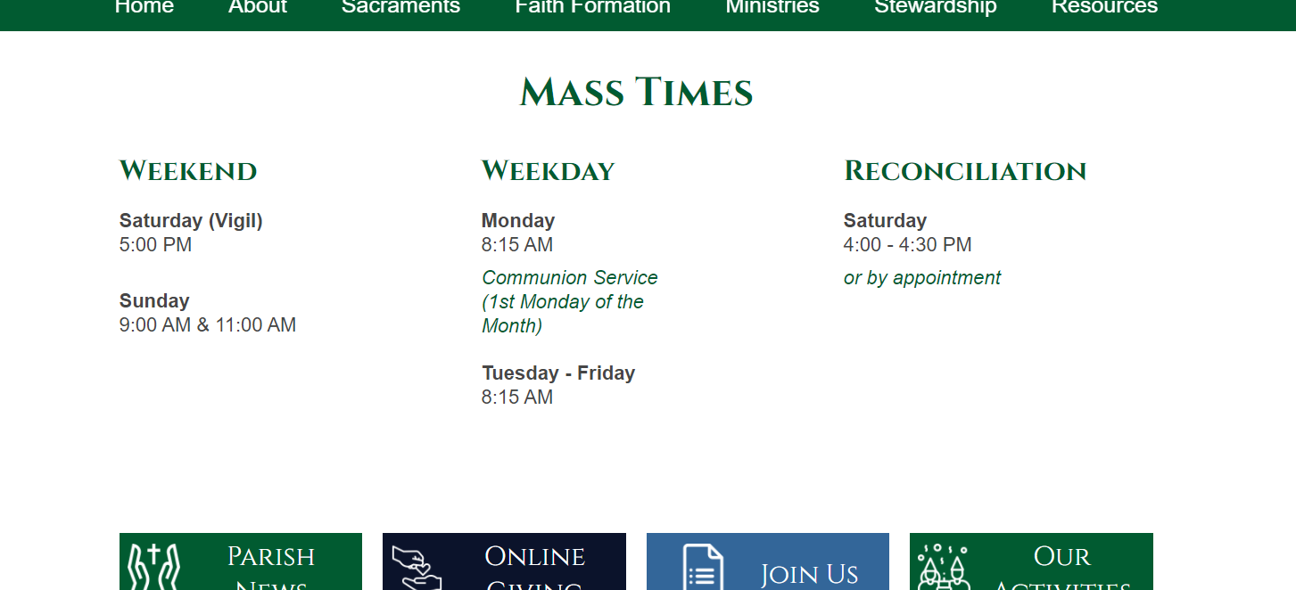 ✔ Homepage - View Full Schedule link for the Mass Times link that is set in the Theme Settings