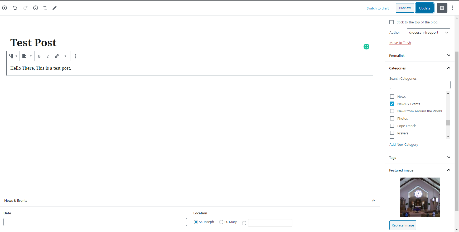 NOTE: To have the posts display, you will need to add a date and location for the post. Again, this will show up after you have placed the post in the "News & Events" category.