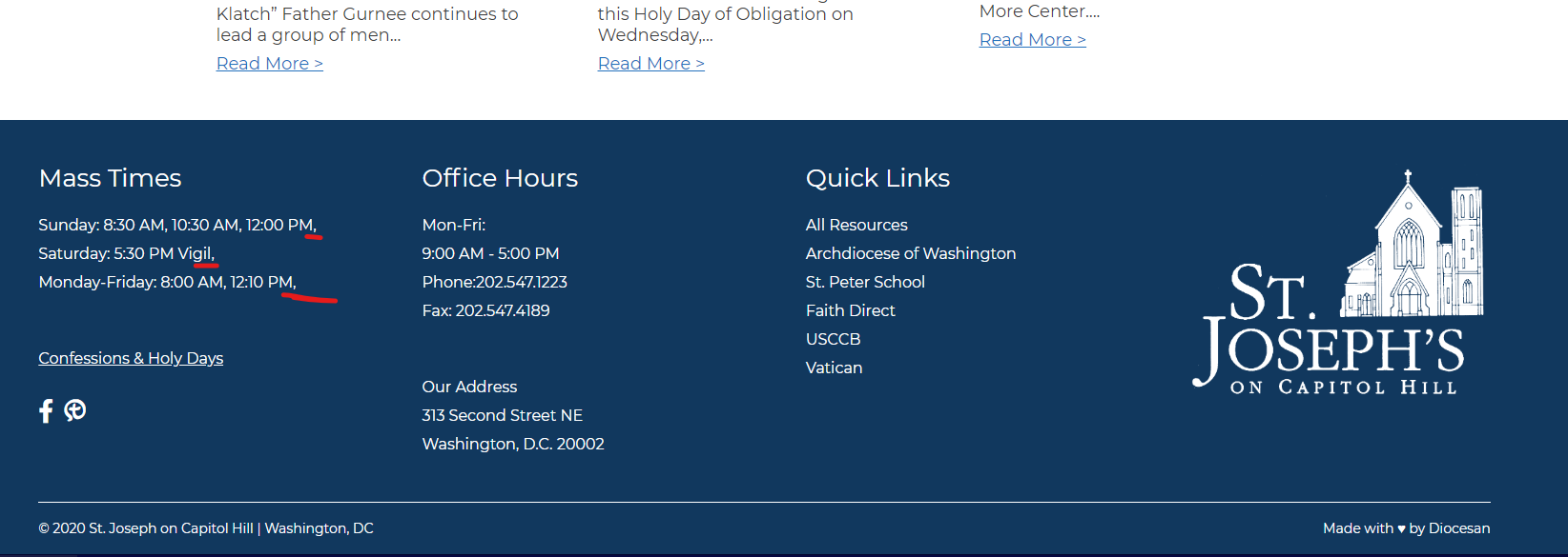 Get rid of the trailing comma after the last Mass Time. Thanks.