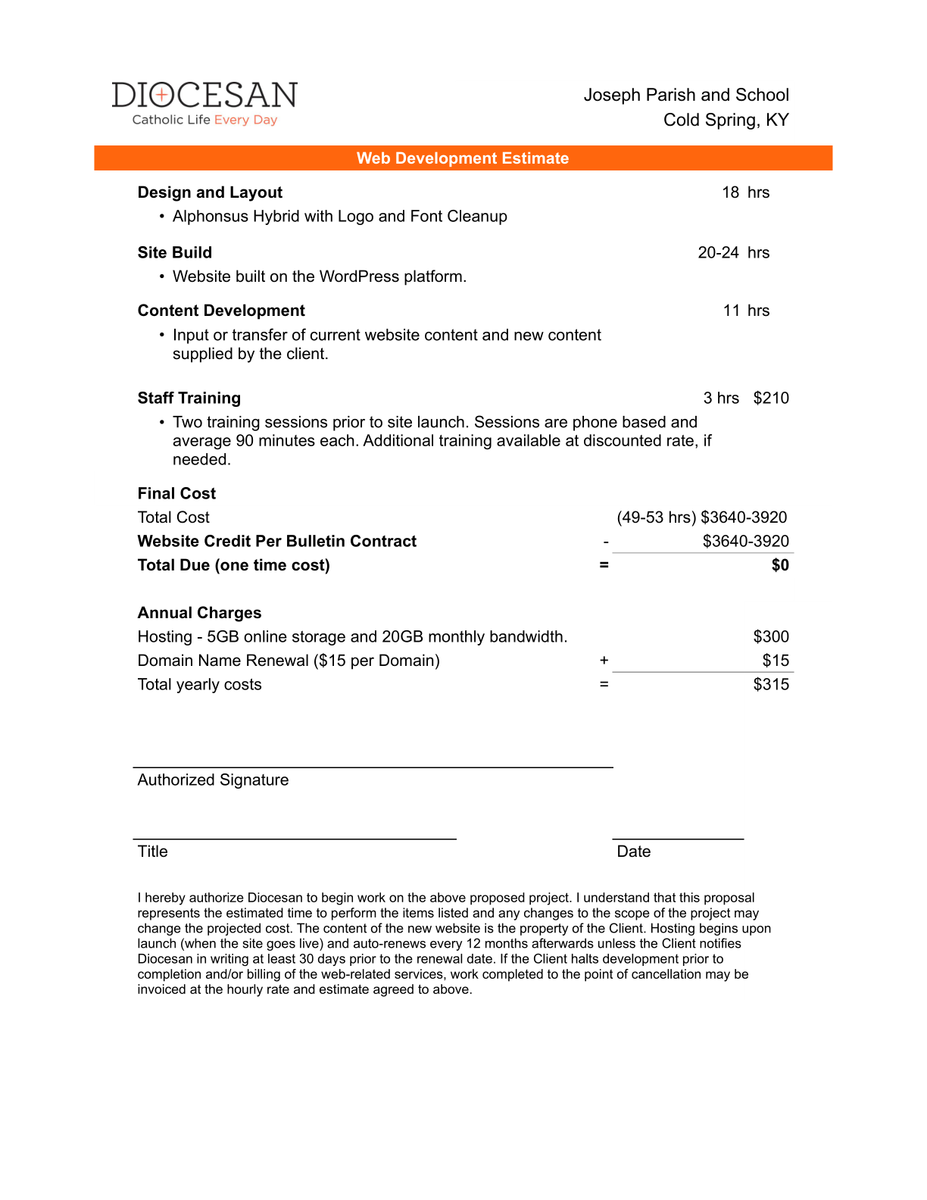 I hope you had a great Easter. Thank you for your patience as I worked to finalize the proposal for the new school and parish websites.
