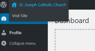 Password: SJCC@rockdaletx - In the top left corner, hover over "St. Joseph Catholic Church" and click "View Site"