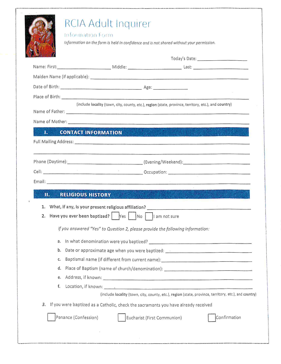 This is RCIA/Adult Confirmation form that we use. Can a form be created from this like this?Thanks,