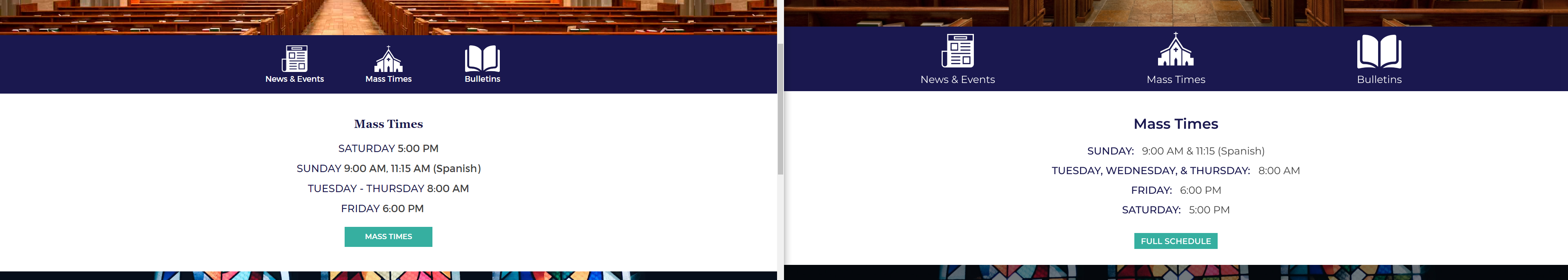 From the list: Build ✔ Homepage - "Mass Times" should be sans serif font Veronica A. added this on Nov 06, 2019 Completed Nov 08, 2019 by Sam P. Assigned to Sam P. Notes actual vs mockup image.png 693 KB • Download Comments & Events Sam Pohlman completed this to-do. Nov 08, 2019 at 3:03 PM