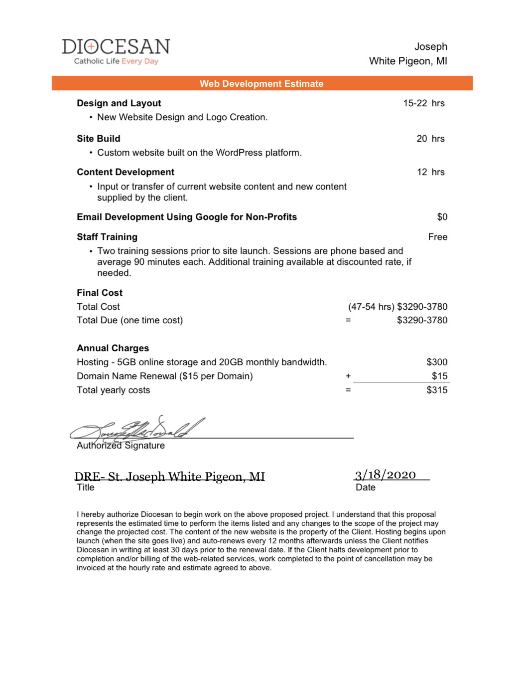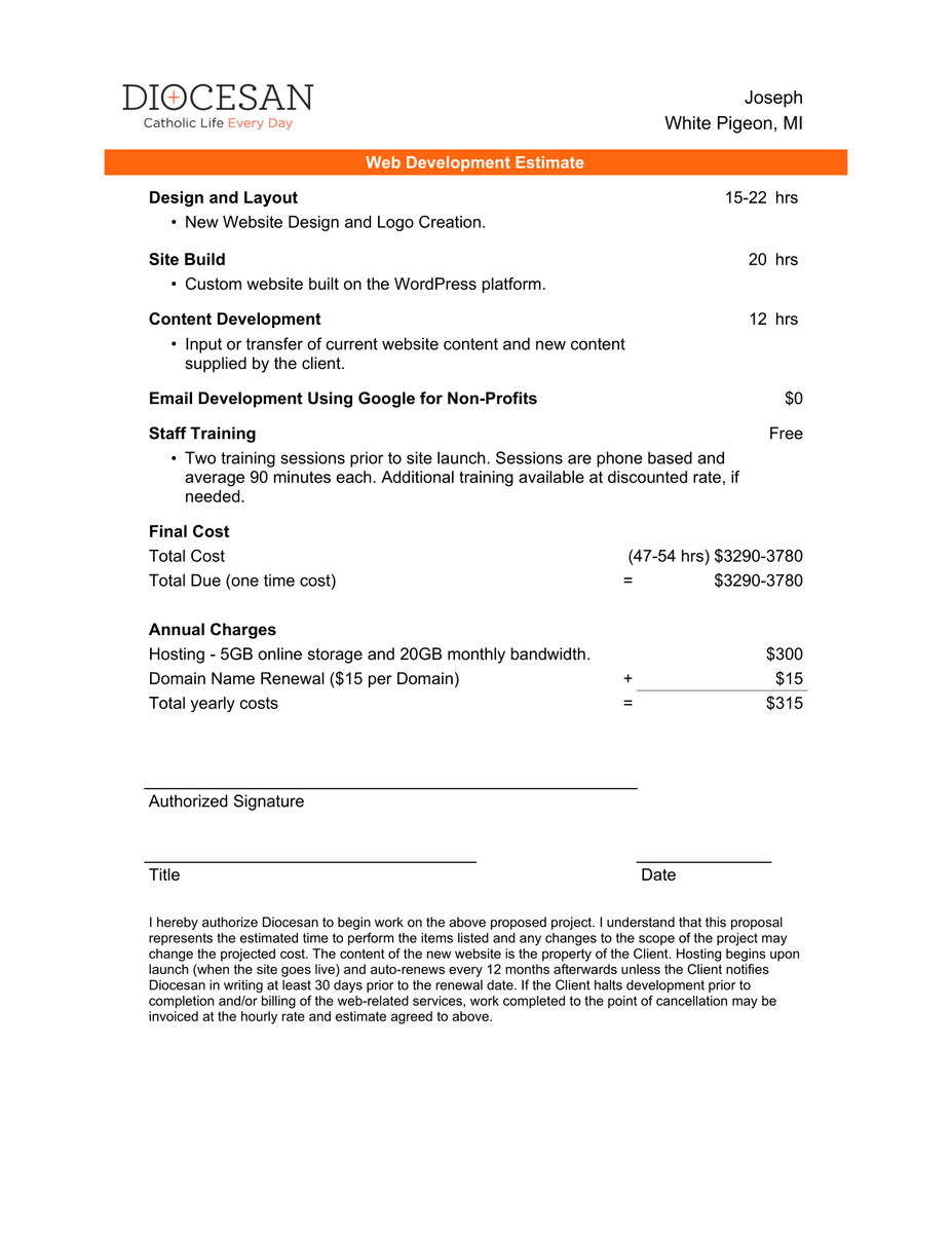 During our Deep Dive conversation it was very clear that you liked the website for John Paul II in Cedar Springs. We will use this site as a template and foundation for your new website. Your website will still have your content and branding. When we use a website as a template this allows the process to move quicker and keep the cost down for you. One thing to keep in mind is if there any changes you wish to make and it would alter the template, we would need to revisit the proposal as it would no longer fall into a template. I do not mean this to prevent you from asking questions, we would certainly let you know if we can make any adjustments or if they would alter the template. Below is a link to the website for John Paul II.