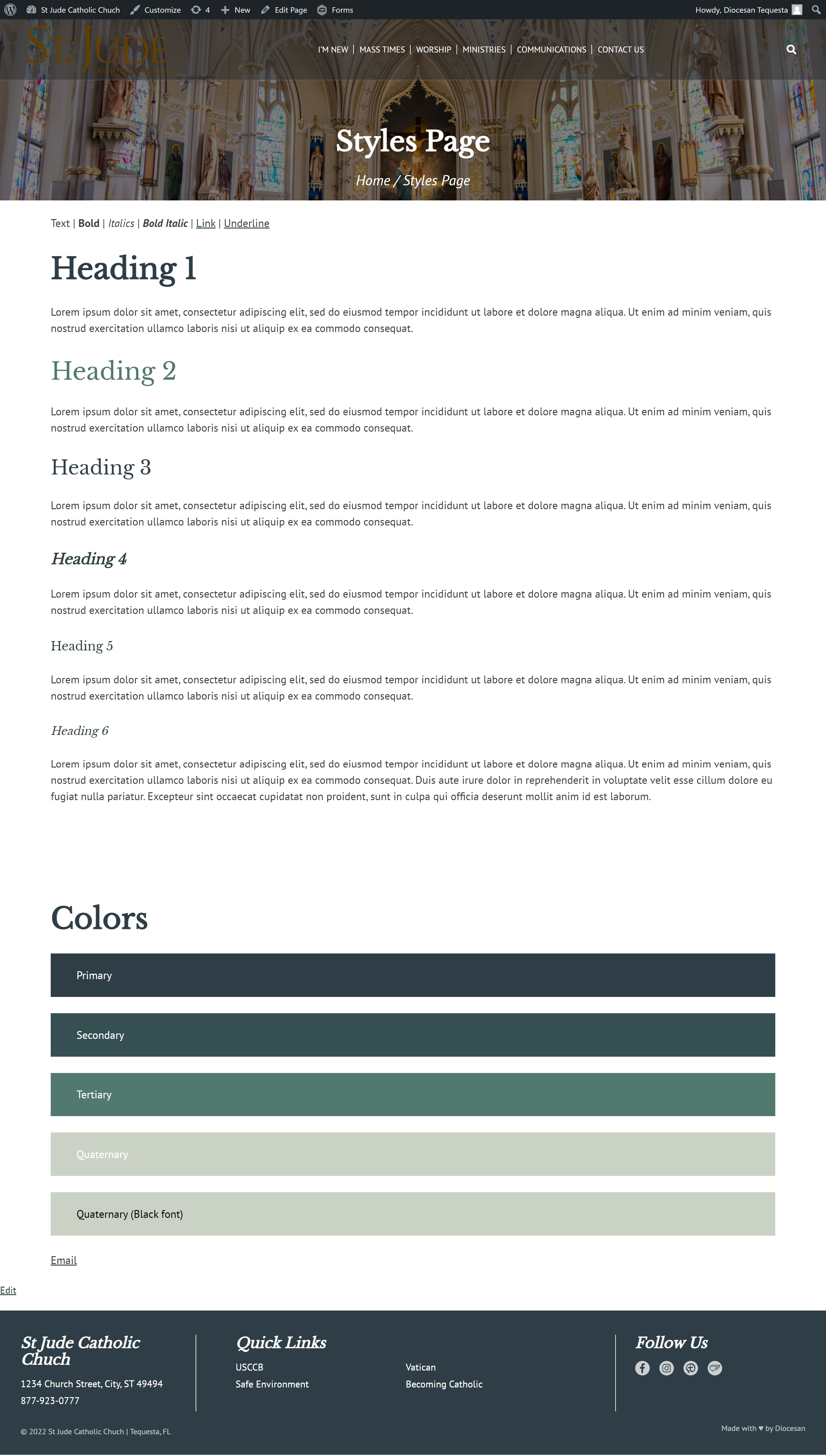 I'm currently working with our developers to fix a couple things that are holding up the design approval process. Once those are resolved I will be sending along screenshots of your home page with the proposed color scheme and fonts for your approval, which you can share with your pastor.