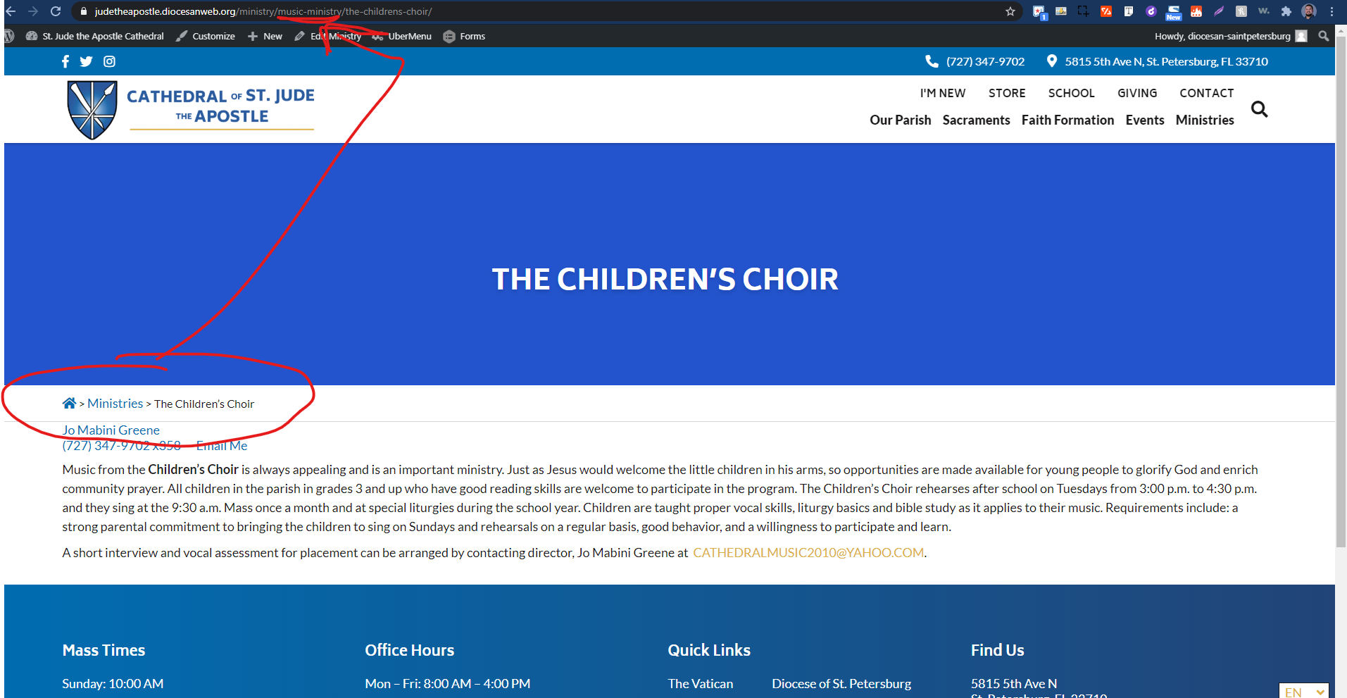 ✔ Ministries - If there is a parent ministry, that should show in the Breadcrumbs perhaps