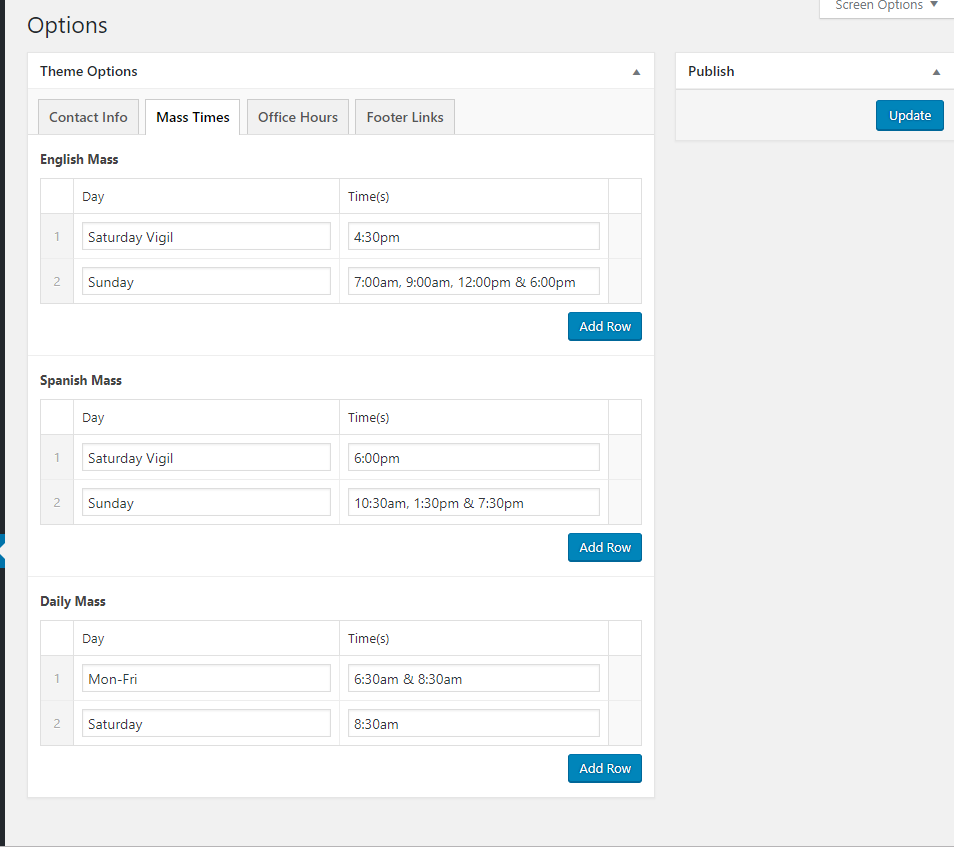 If you need any assistance adding the Ash Wednesday times, just let me know. We could also add it as text on the image of the ashes that is on your slider, if you want, to make it more prominent.