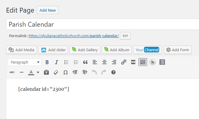 So you can add text, images, etc., either above or below that shortcode, but if we remove the shortcode, our calendar will no longer show up.