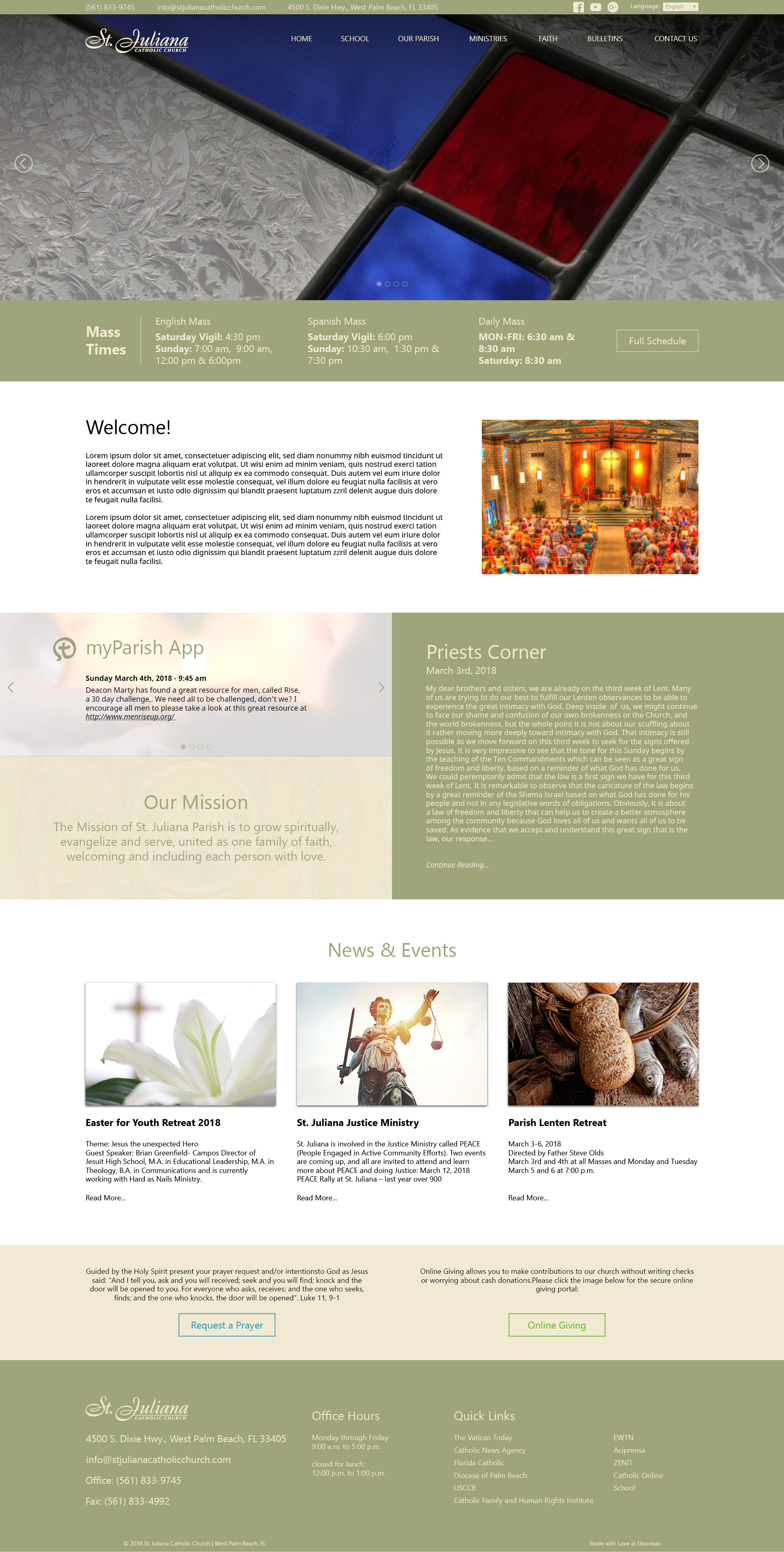 Posted by Sam Lanning · Mar 08, 2018 at 9:06 PM Homepage success! Fr. Bob really liked the homepage for the site, here is what I finished for them. He is taking it to the lead pastor at the church to get his opinion as well. Juliana-westPB.jpg 1.1 MB • Download 👏