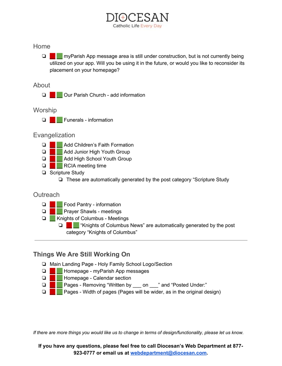 For your convenience, I have attached a document detailing what content is missing and items we are aware are incomplete on our end. If there is anything we have missed, or something you would like us to change, please let us know.