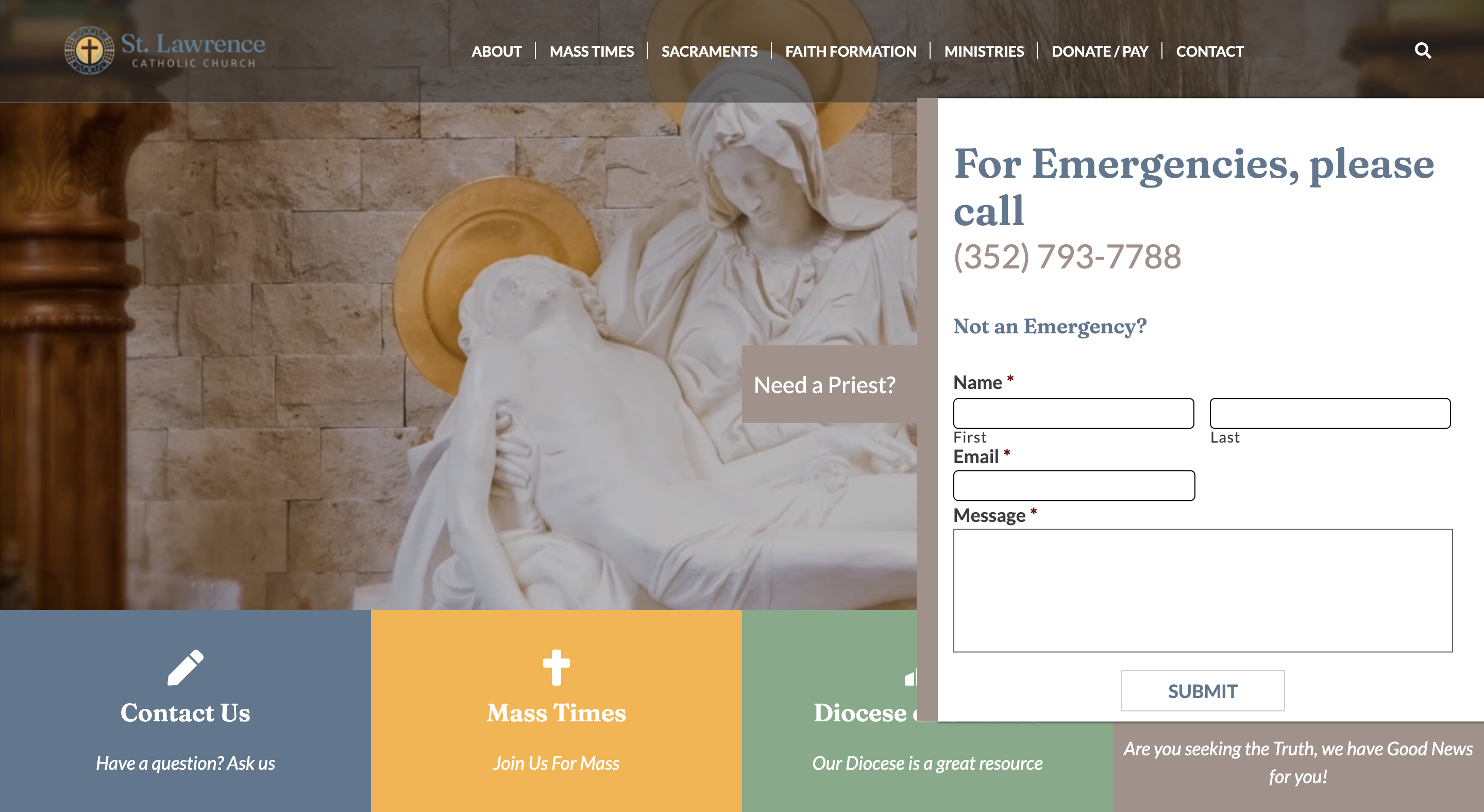 The "Need a Priest?" sticky form has been added to the site. Please let us know if you have any questions.