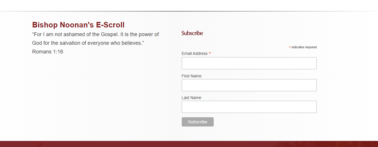 ✔ Footer - Add in Bishop Noonan's Form, and taking the necessary Theme Settings that apply as well
